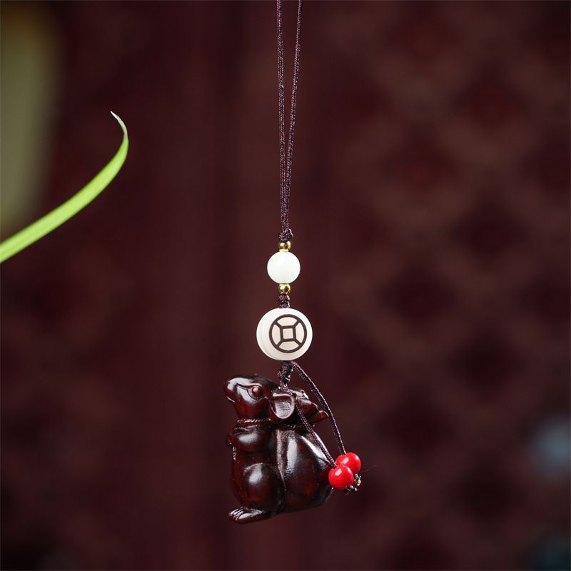 花梨木彫り手彫り品 ラオス産手彫り品 彫刻工芸品 紫檀文玩置物 黒紐付き