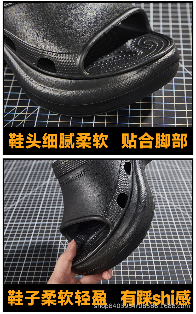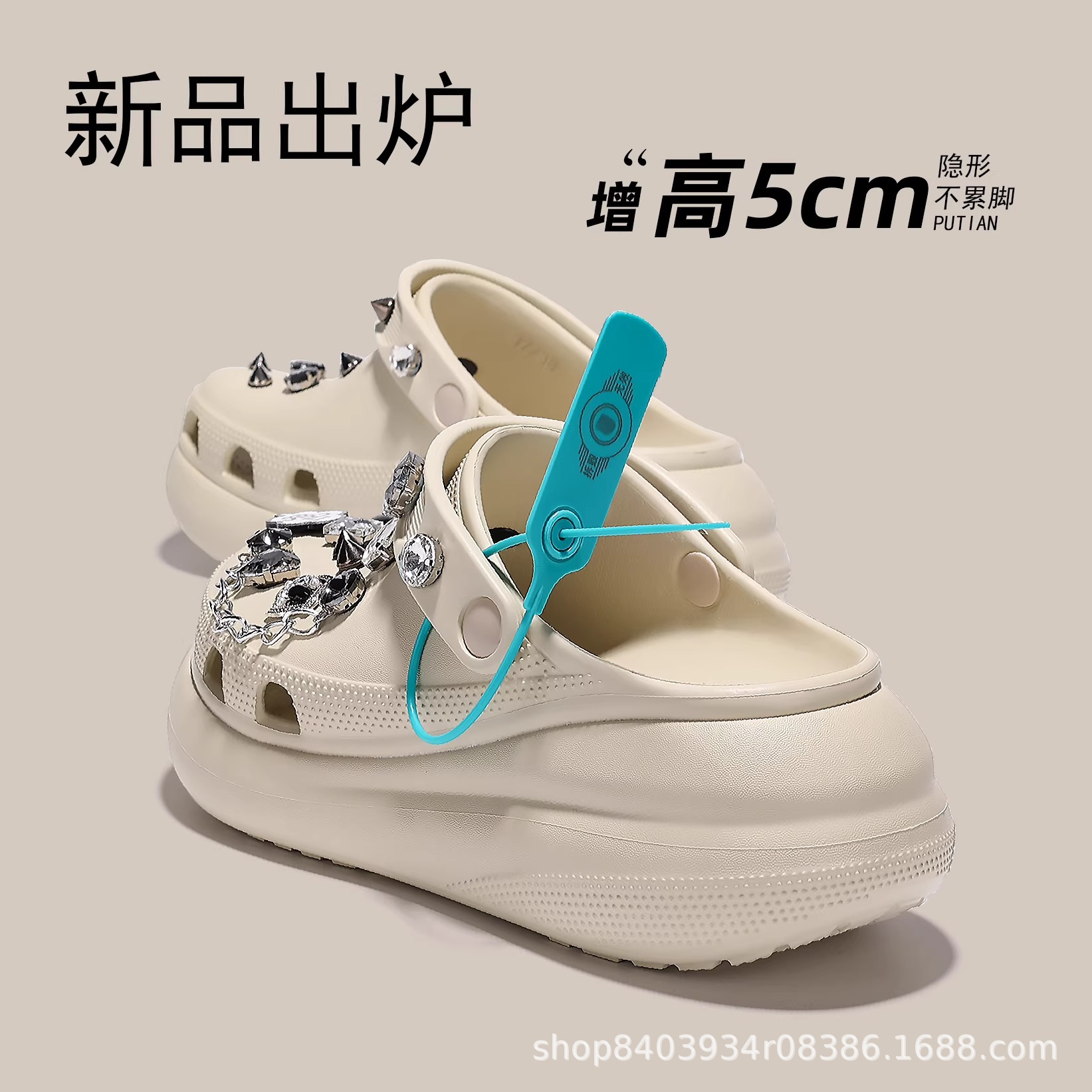 2025新型の春の雲の泡芙の厚い底の穴の靴の女性のタイプは外に着て糞感の砂浜のサンダルを踏んでカジュアルな潮を感じます。