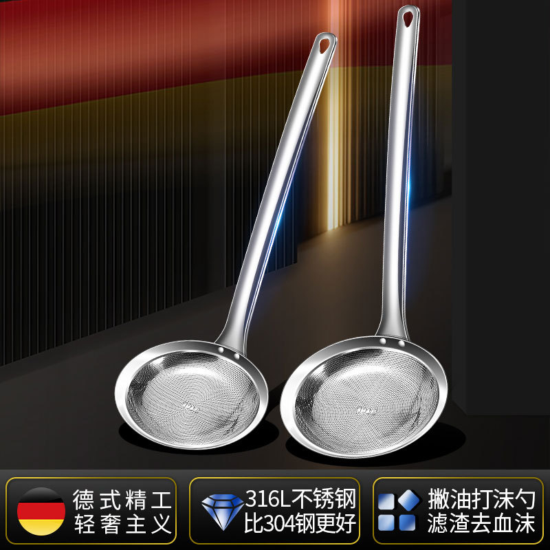 316ステンレススキミングスプーン台所厚さ細い網濾過網ふるいスプーン調理延長断熱鍋泡スプーン