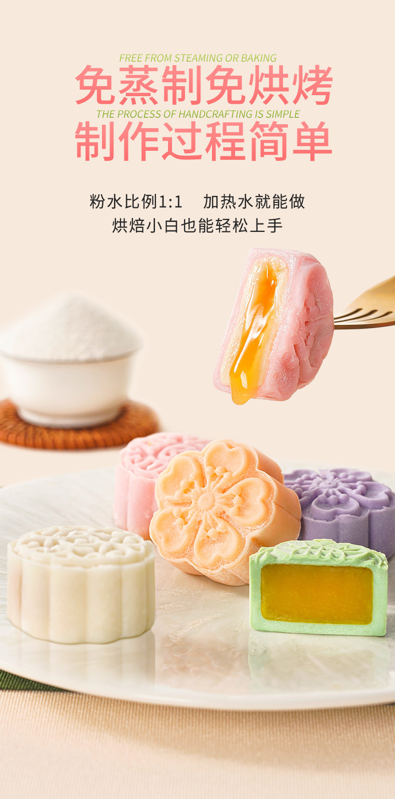 新ボーミン雪肌月餅プレミックスパウダー自家製材料セット雪肌専用パウダー蒸しや焼かない業務用チームビルディング製造