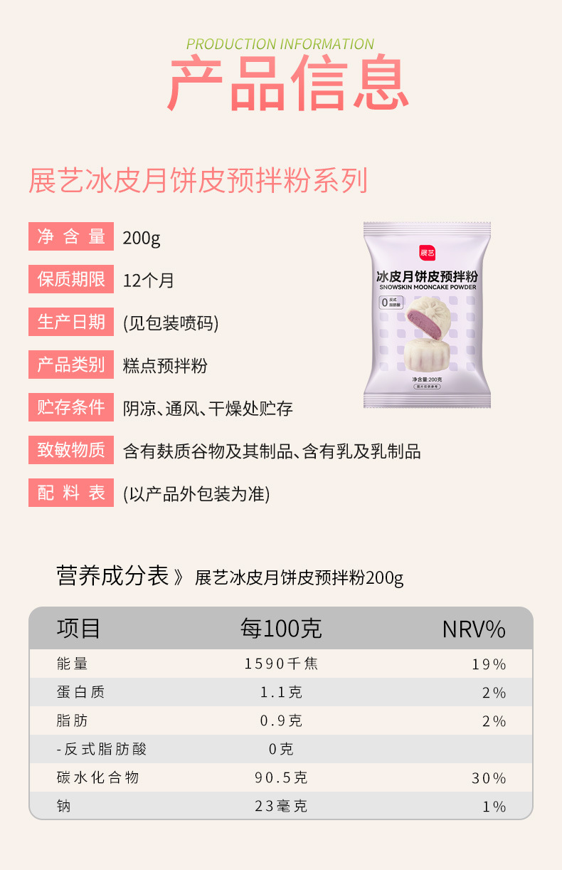 展艺冰皮月饼粉200g 免蒸煮冰皮预拌粉自制冰皮月饼专用粉
