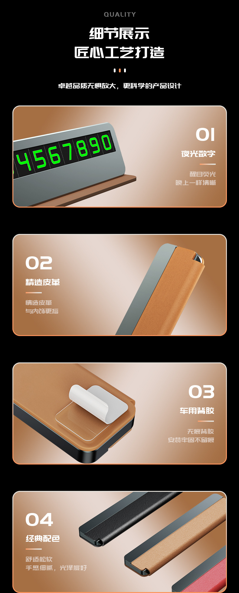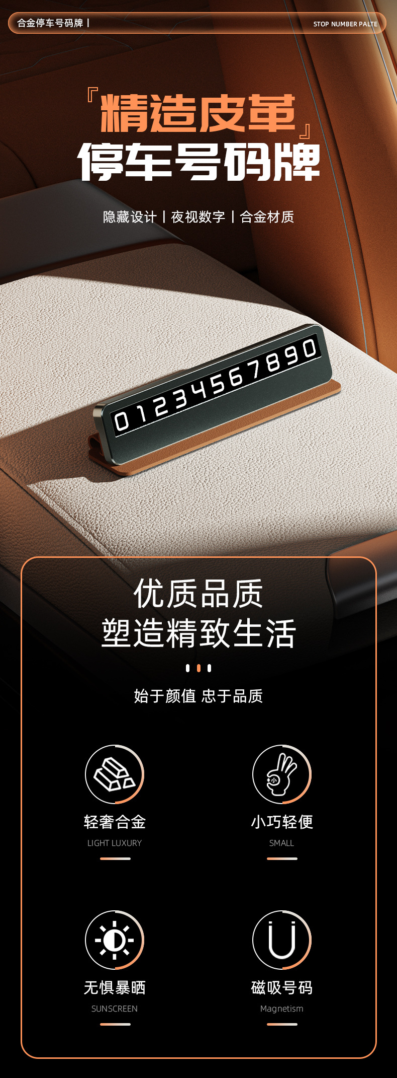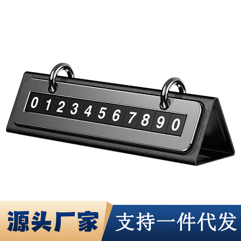 众横新款停车号码牌挪车电话牌车载创意日历皮革金属汽车内饰摆件