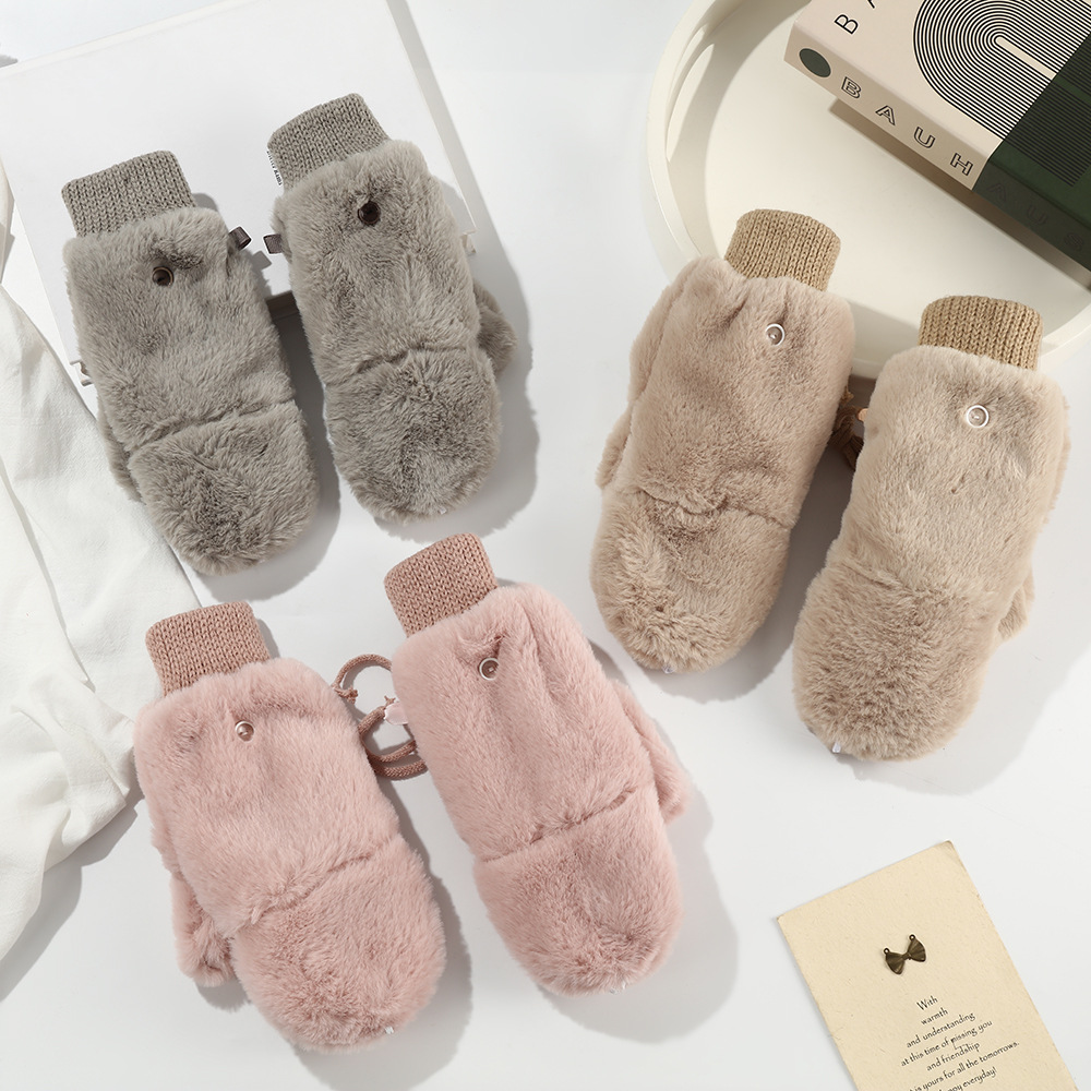 韩版女士手套冬户外包大拇指保暖加绒骑车开车学生半指翻盖手套