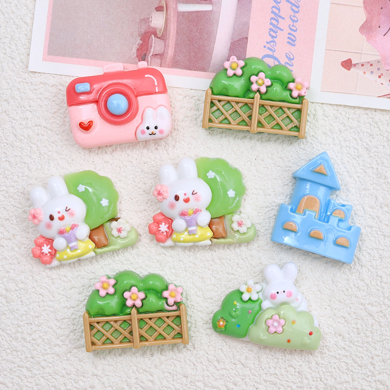 かわいい庭のウサギの漫画のクリームのゴムはアイデアの靴のボタンの材料の樹脂の部品のdiyの装飾品のヘアピンを飾ります。