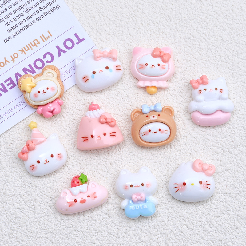ピンクスナック猫かわいいクリームアクセサリー樹脂diyアクセサリー漫画ヘアピン穴靴バックル装飾アクセサリー