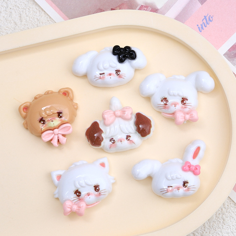 萌え目の動物の頭の漫画のクリームのゴムは樹脂のdiyのアクセサリのヘアピンの穴の靴を飾って装飾の部品の靴の花を掛けます。