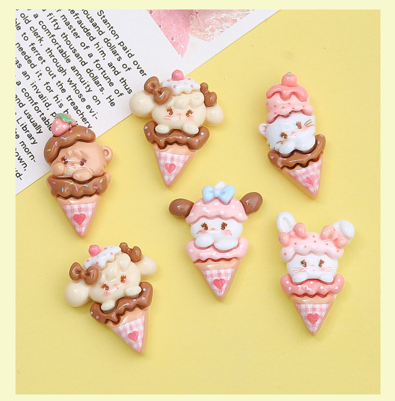 甘いアイスクリームの明るい面diyクリームゴムの自家製携帯ケースのヘアピン冷蔵庫に樹脂の部品を貼って卸売りします。