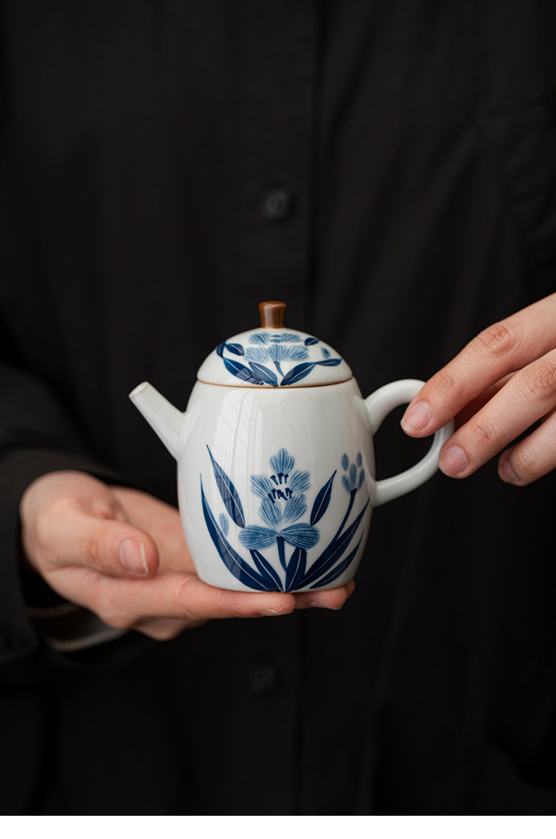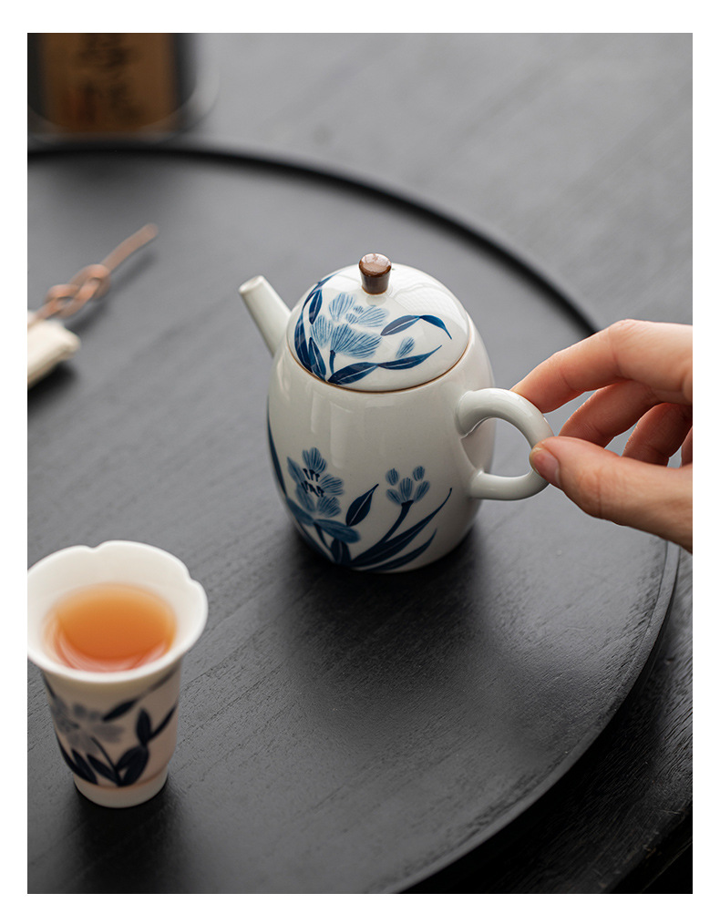 レトロなタンポポの竜の卵の壺の陶磁器の手描きの釉薬の下で色彩の家庭のアイデアの小さいサイズの泡のティーポットの工夫の茶器の単壺