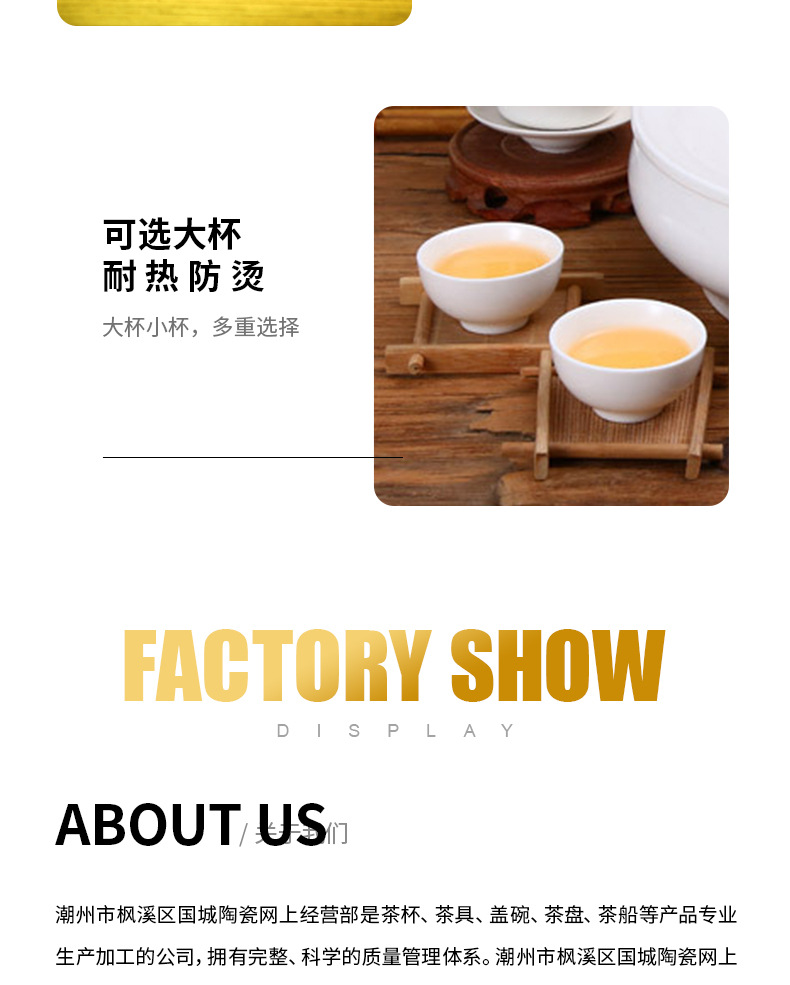 中国式純白玉磁器工夫カップ家庭用工夫カップ陶磁器柄付きカップ卸売り純白主人カップセット