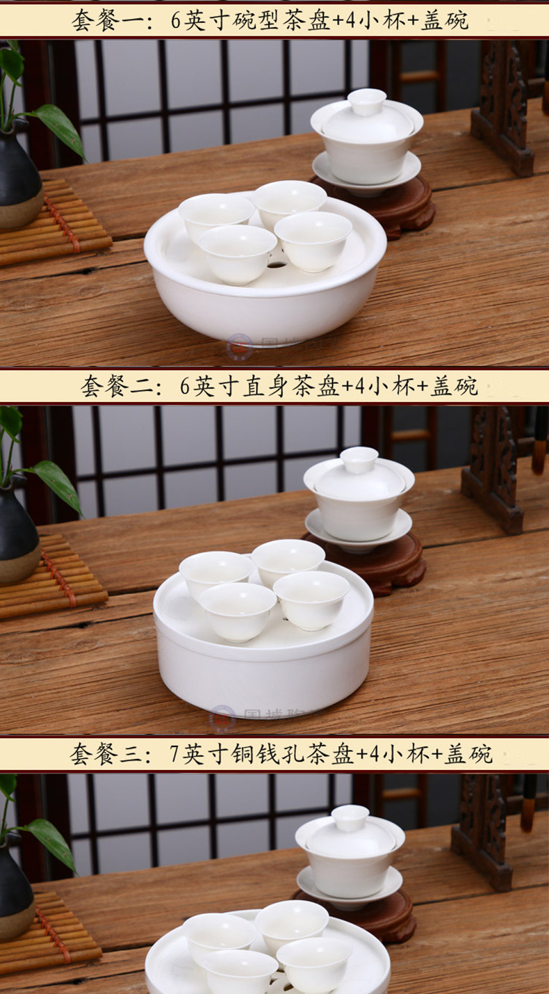 ✅Jh潮汕白磁器工夫茶器セット円形鼓形貯水茶盤10インチセット純白陶磁器蓋碗