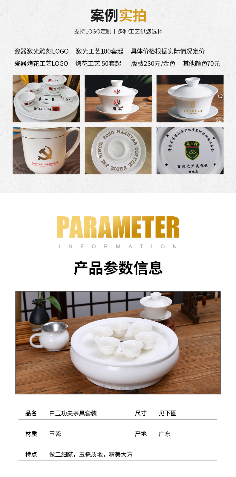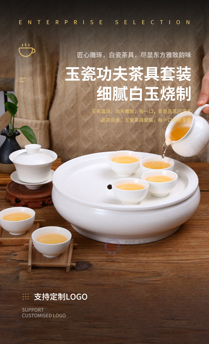 セラミック白磁白潮州カンフーティーセット印刷可能なロゴとティートレイホテルティーアートティーカップティーセット