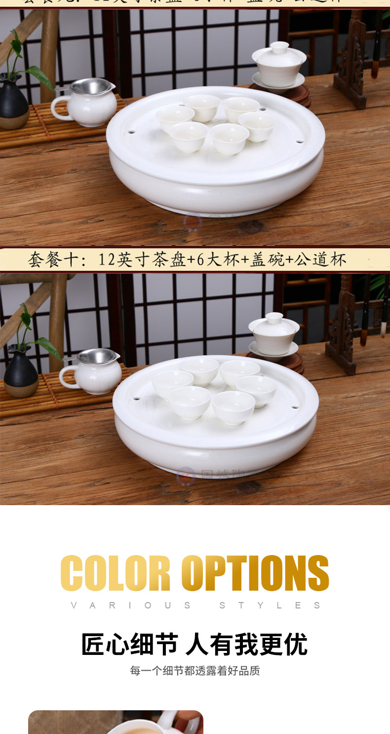 陶瓷纯白茶具整套10寸茶盘白瓷功夫茶具套装盖碗茶杯家用酒店公寓