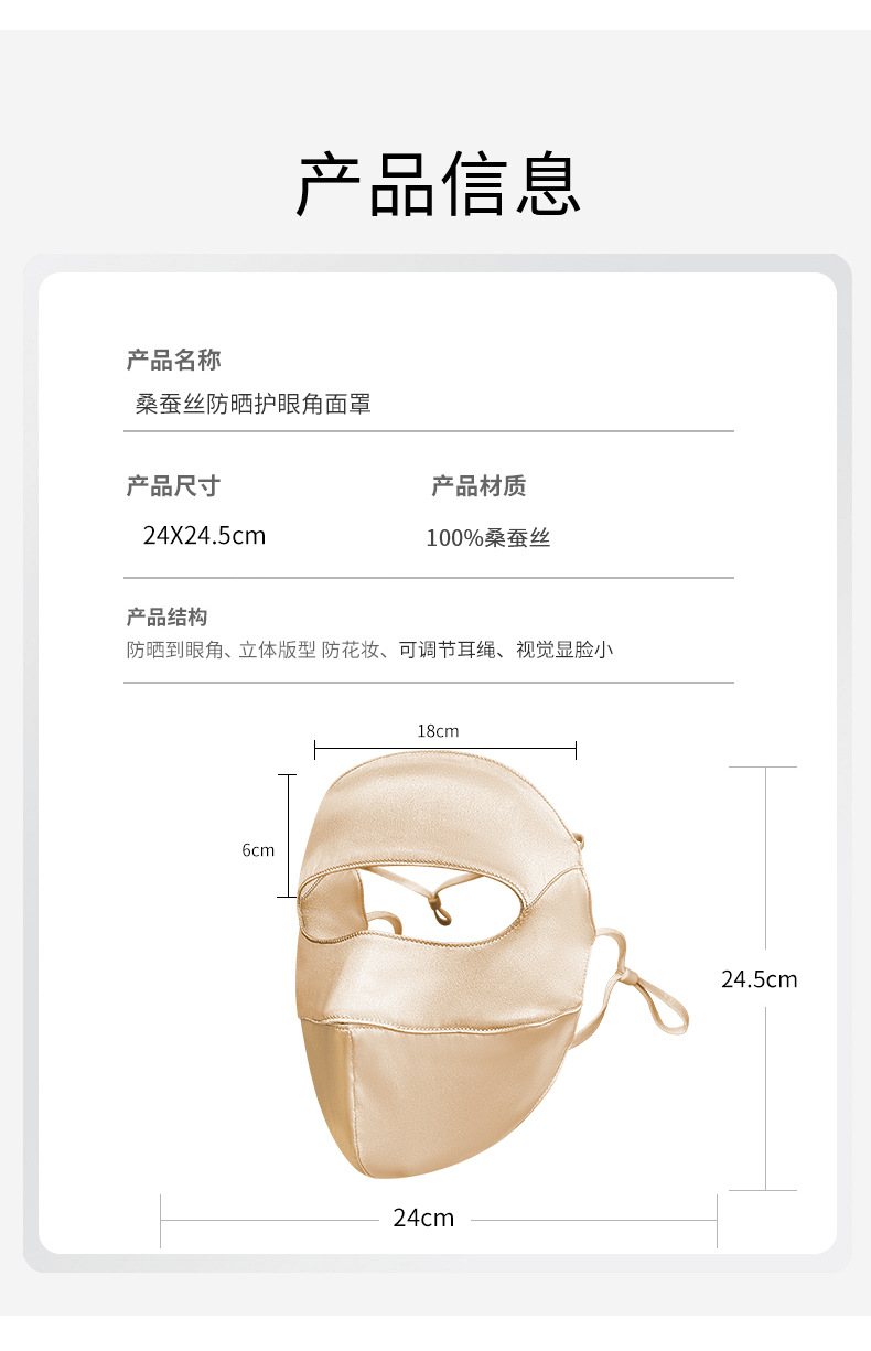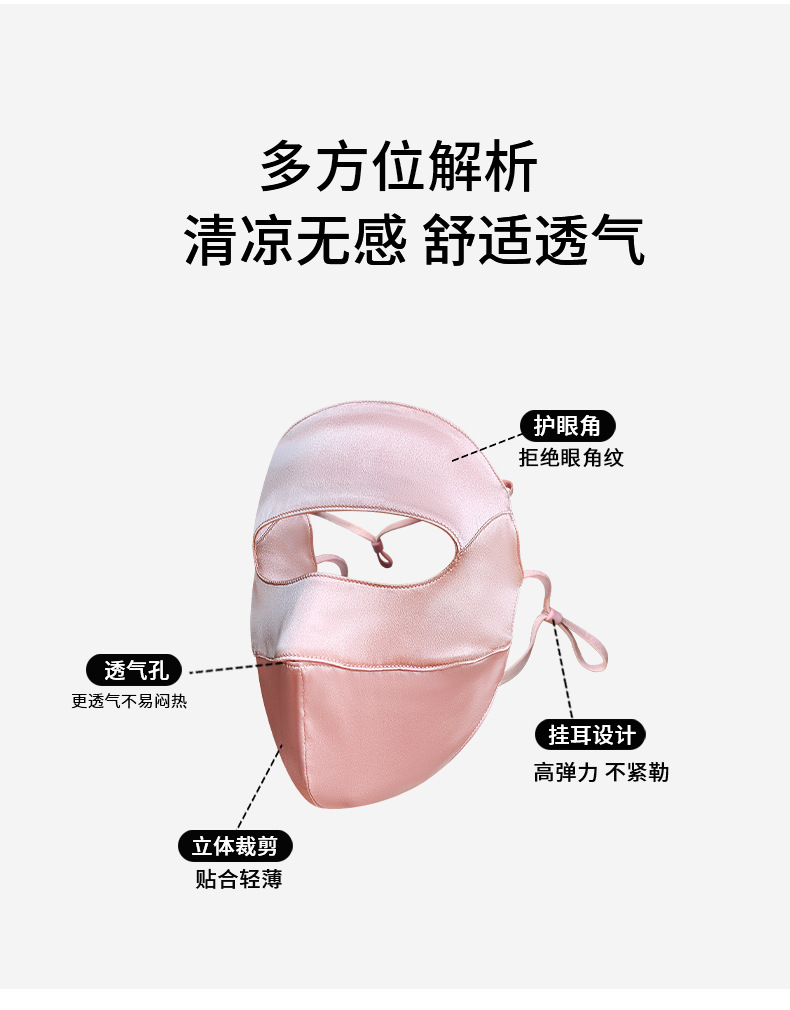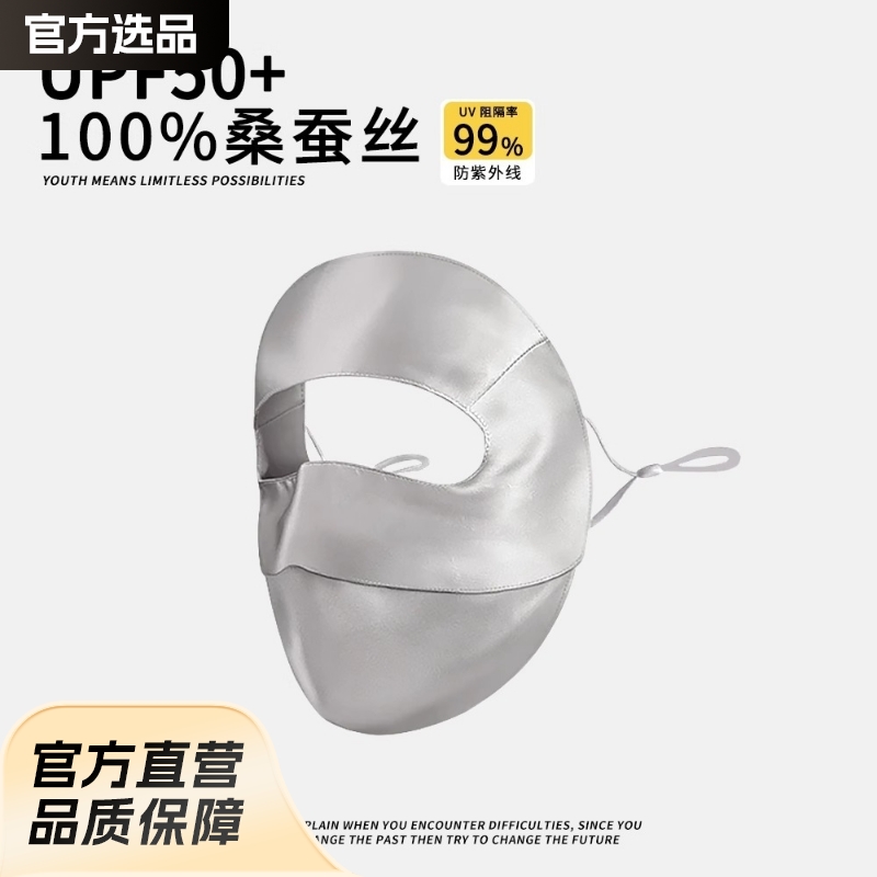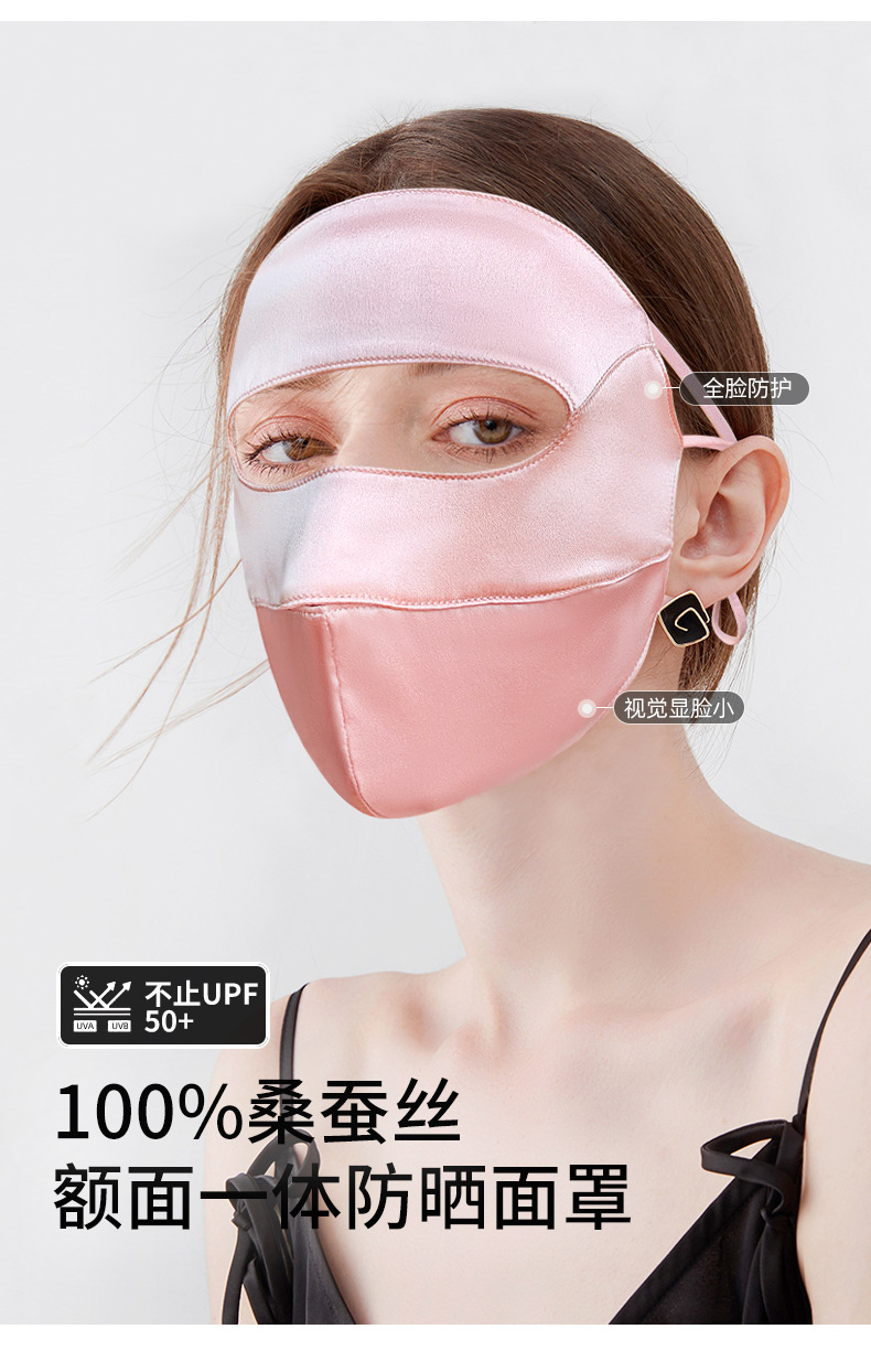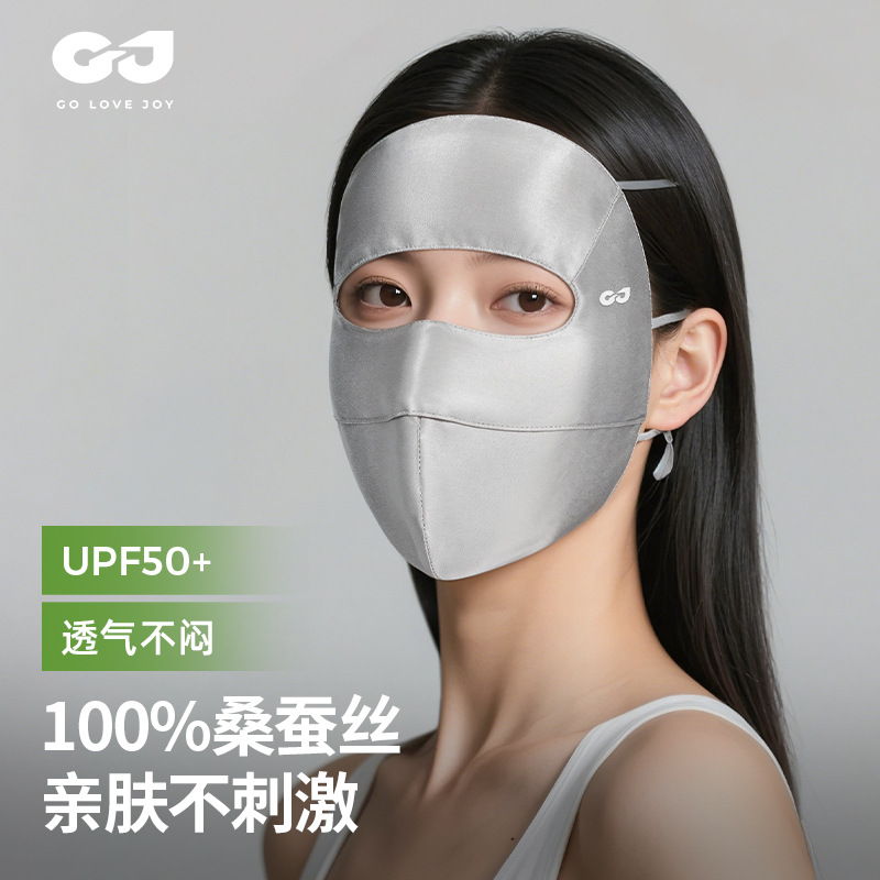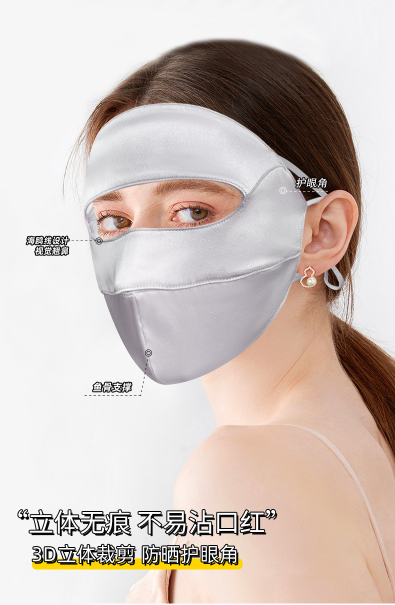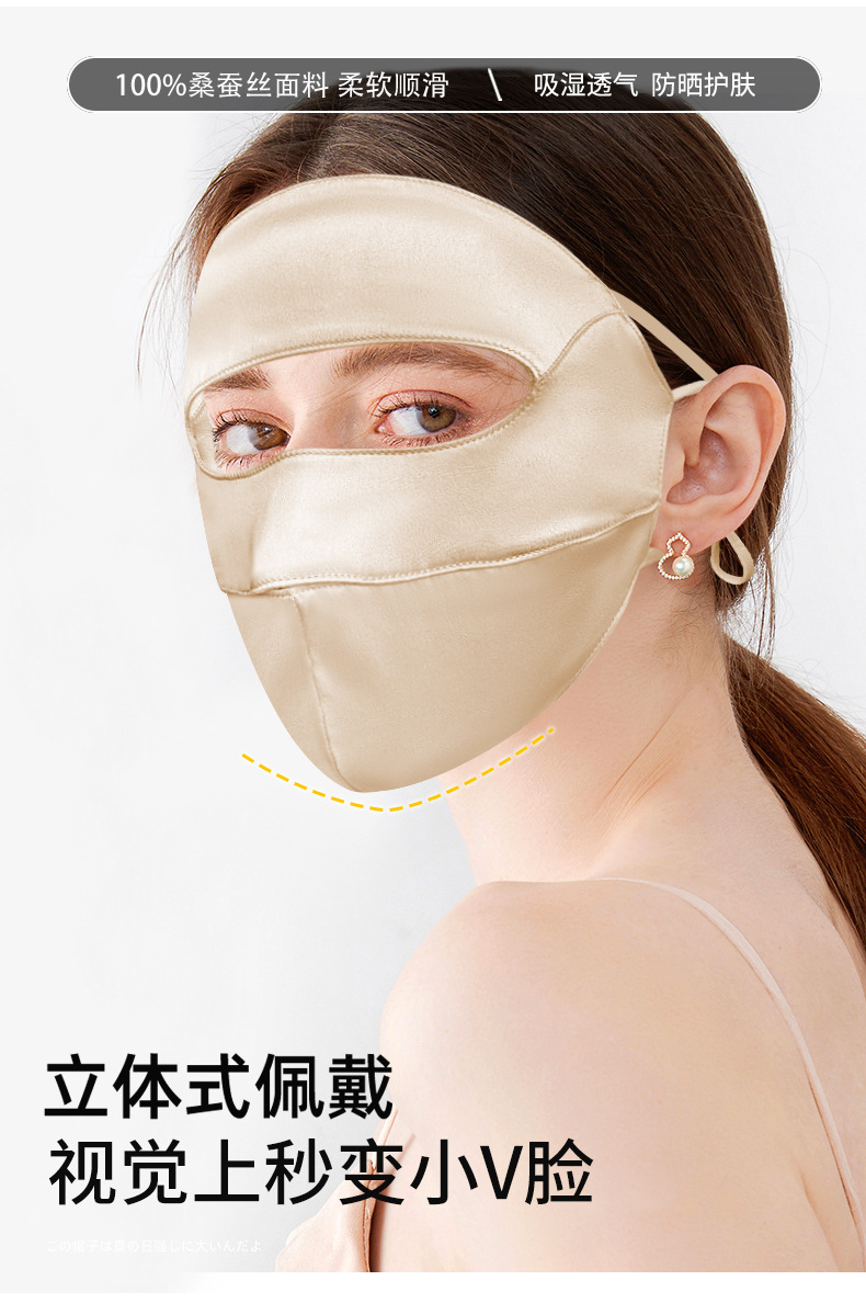 高乐捷真丝防晒面罩女桑蚕丝口罩透气遮阳遮全脸防紫外线护眼角薄