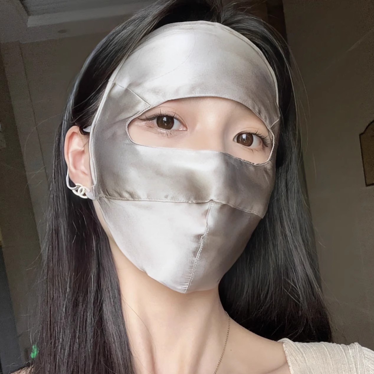 真丝防晒面罩遮全脸口罩双层防紫外线蓝光遮阳桑蚕丝女医美脸基尼