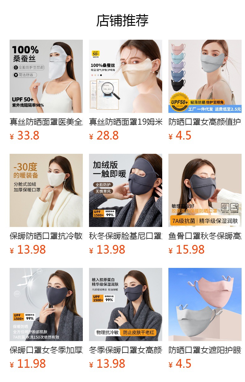桑蚕丝真丝面罩女夏季防晒脸基尼防紫外线遮阳口罩敏感肌