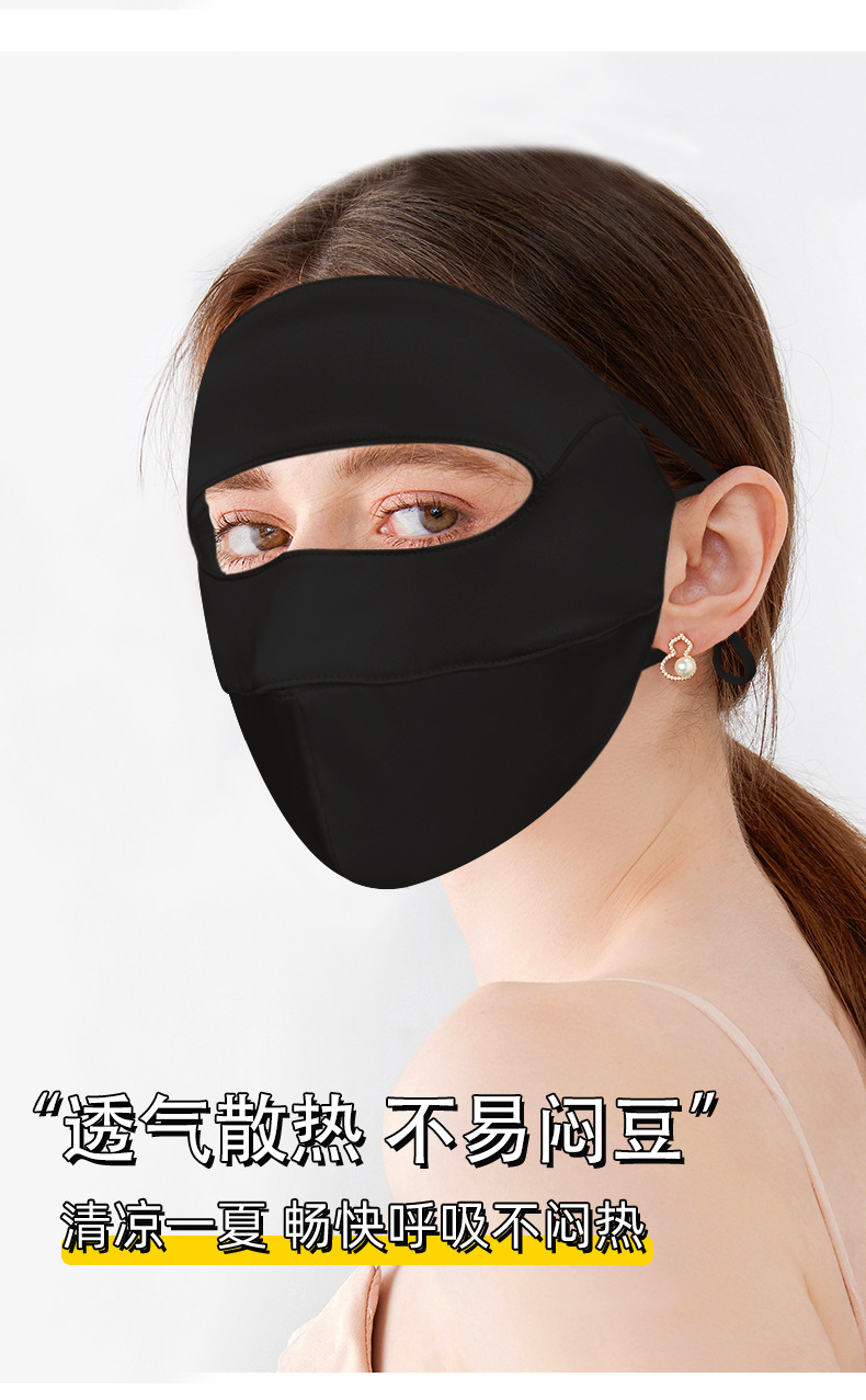 日焼け止めマスク女性高颜値眼角3d立体通気屋外サイクリング紫外線防止氷糸マスク黒