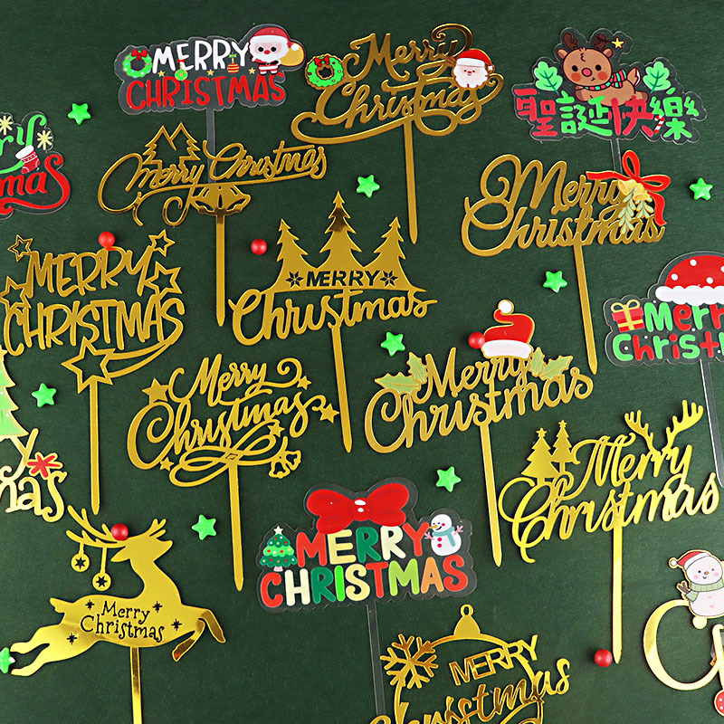 クリスマスのアクリルケーキのデザートの装飾のプラグインのクリスマスの楽しいmerry Christmasケーキの旗を挿します