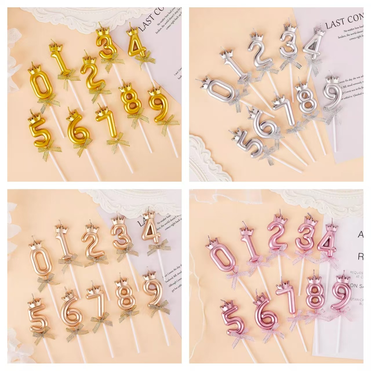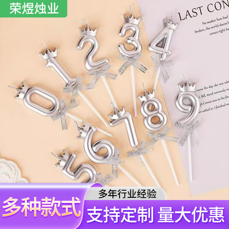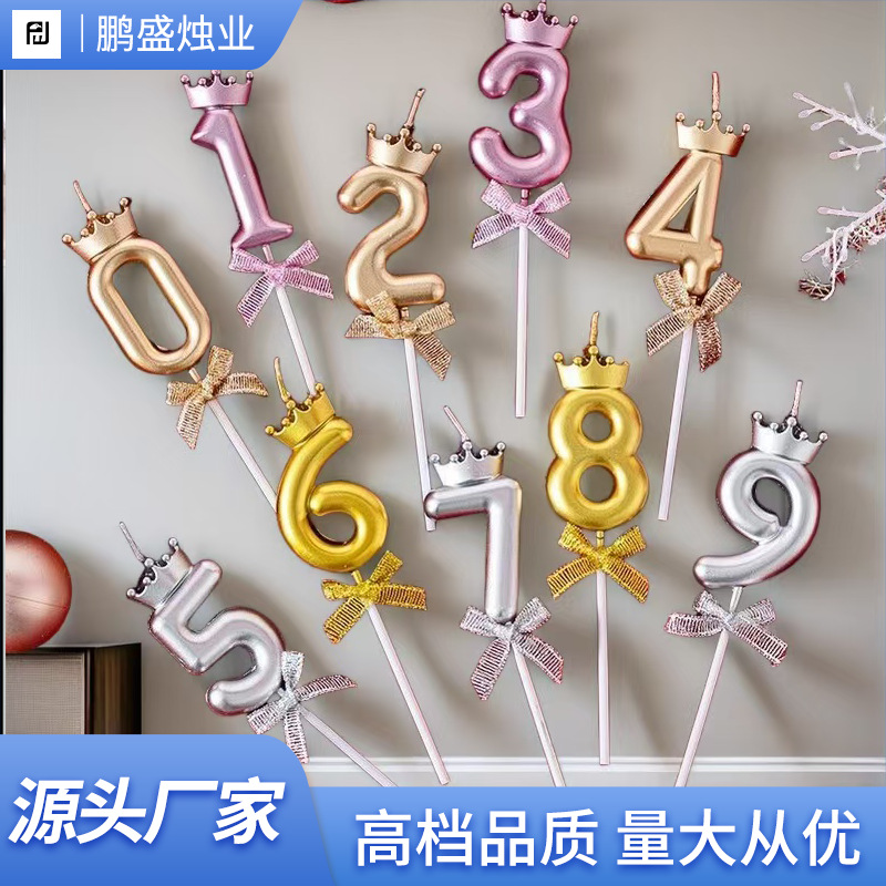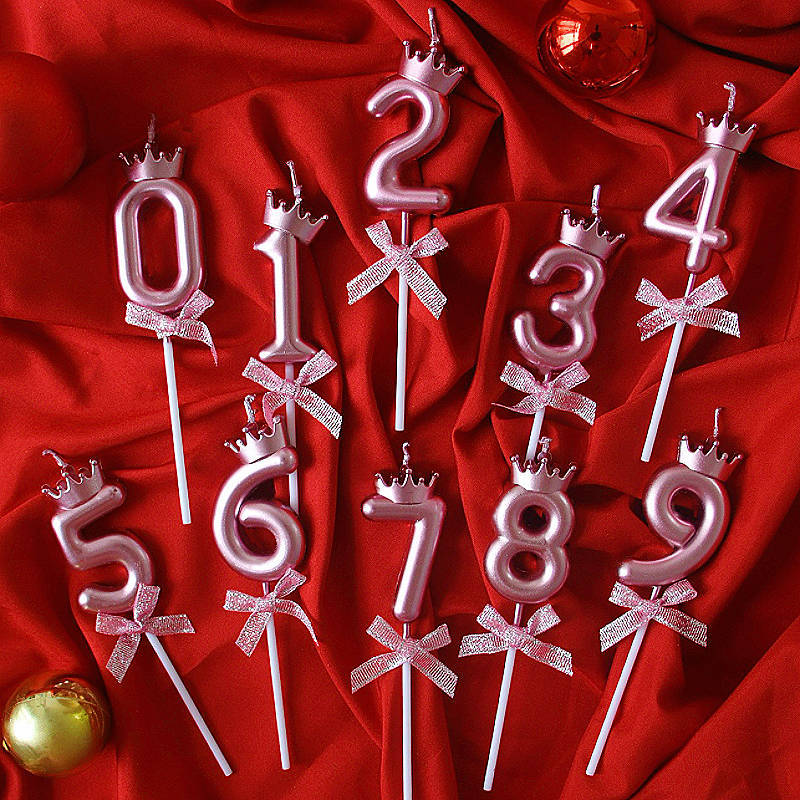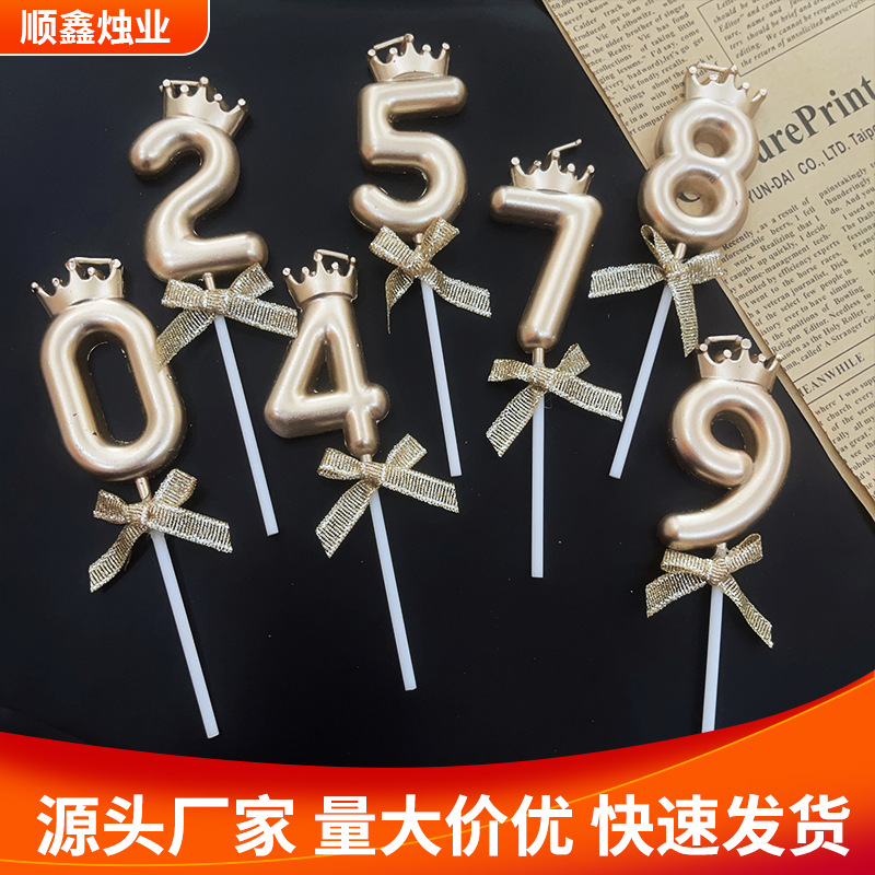 クリエイティブシャンパン色クラウン蝶結び数字誕生日キャンドルinsネット赤成人パーティー子供歳ケーキ