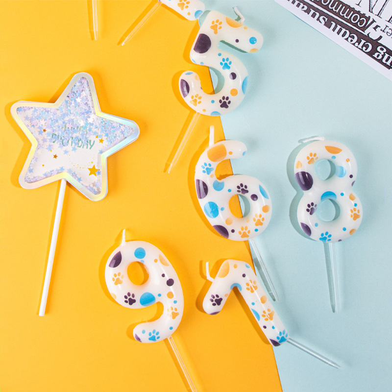 卡通狗狗脚印宠物数字蜡烛儿童蛋糕装饰插件男孩女孩生日周岁烘焙