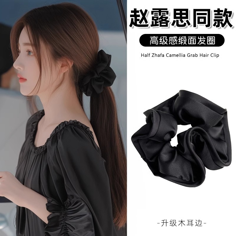 法式高级感缎面超大肠发圈头绳女生2025新款橡皮筋女扎头发饰头花