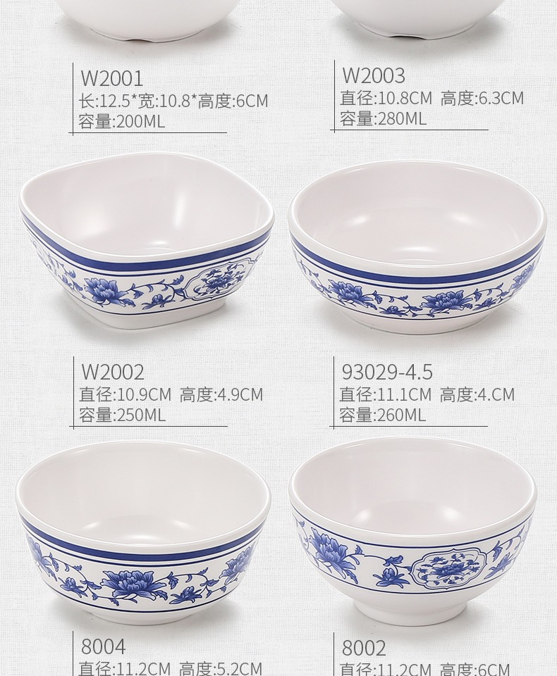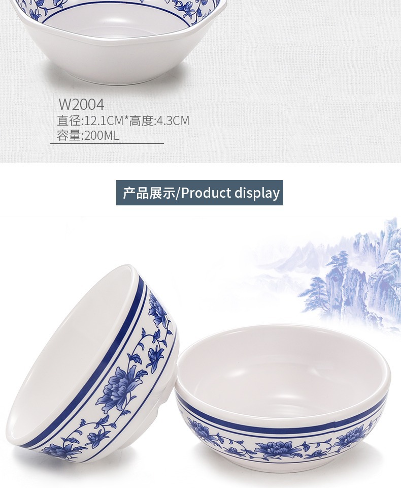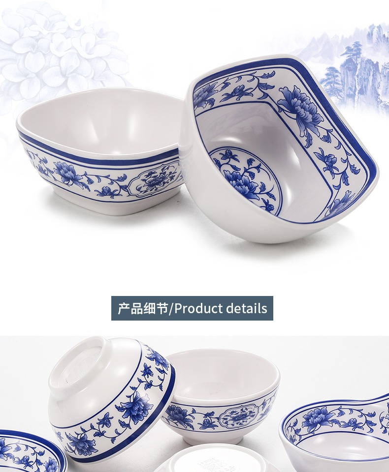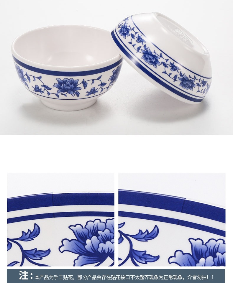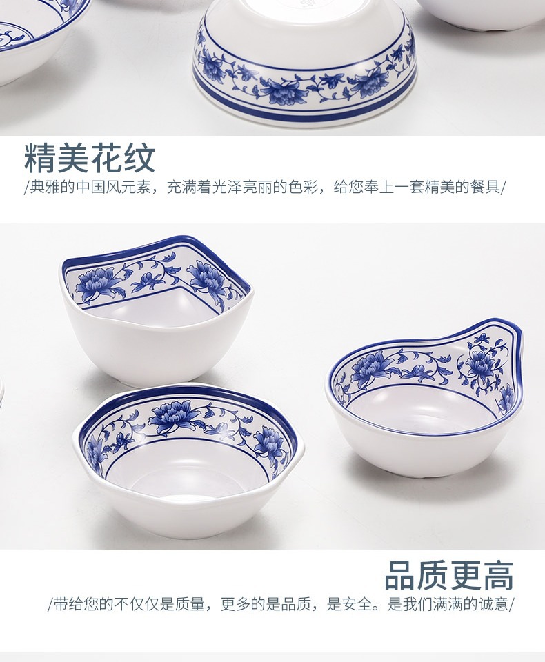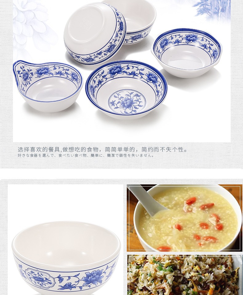 メラミンの小さい碗のプラスチックは青花の磁器の食器のホテルのレストランの調味料の碗のご飯の碗のかゆの碗の業務用をまねます。