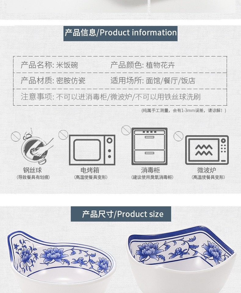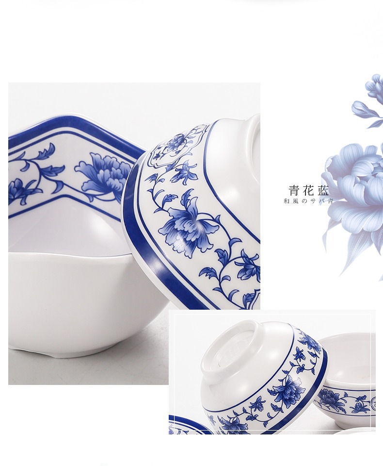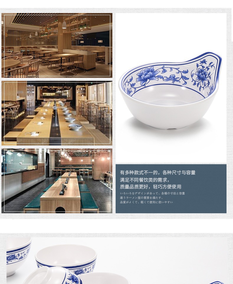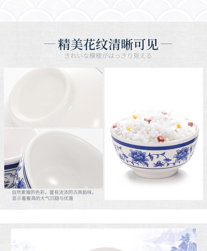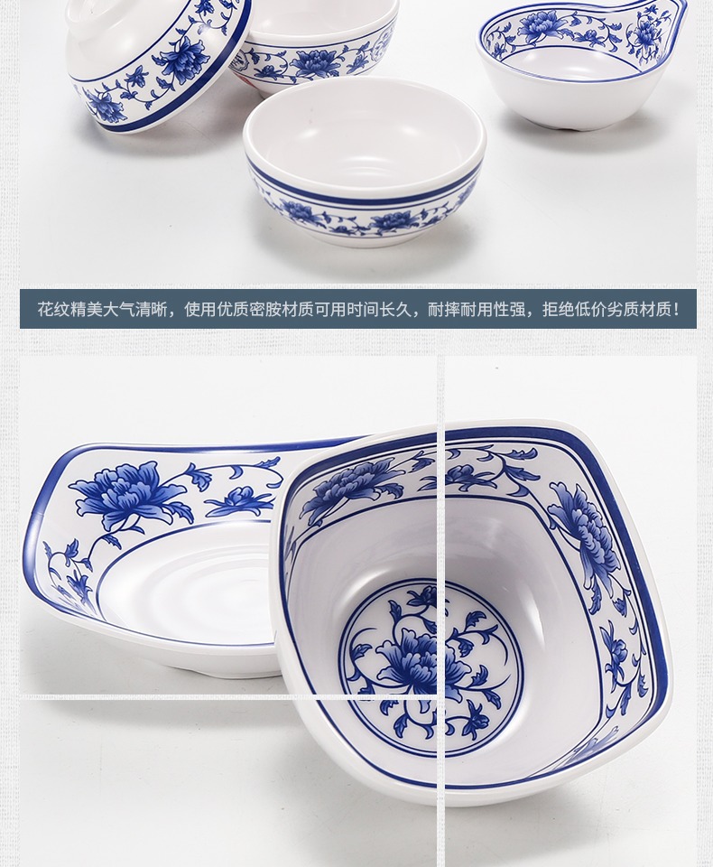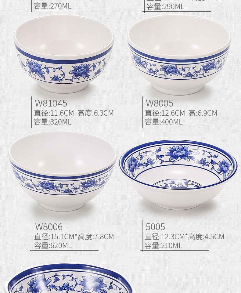 メラミンの小さい碗のプラスチックは青花の磁器の食器のホテルのレストランの調味料の碗のご飯の碗のかゆの碗の業務用をまねます。
