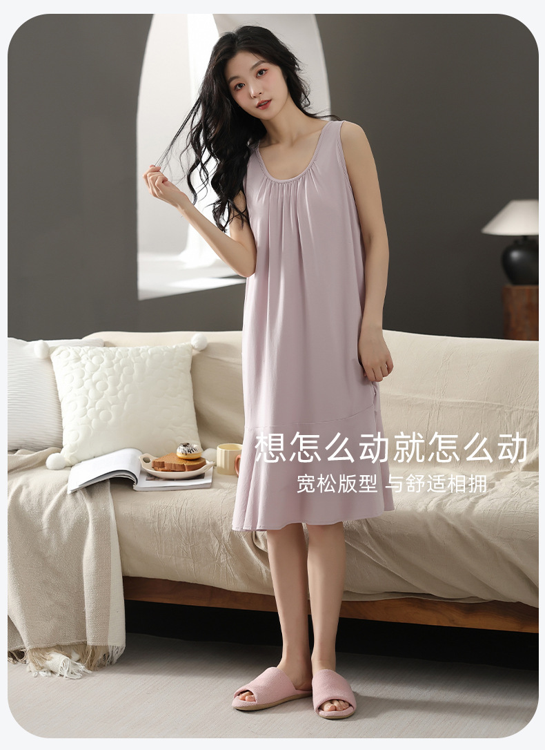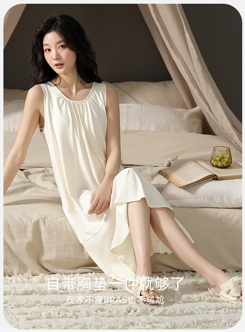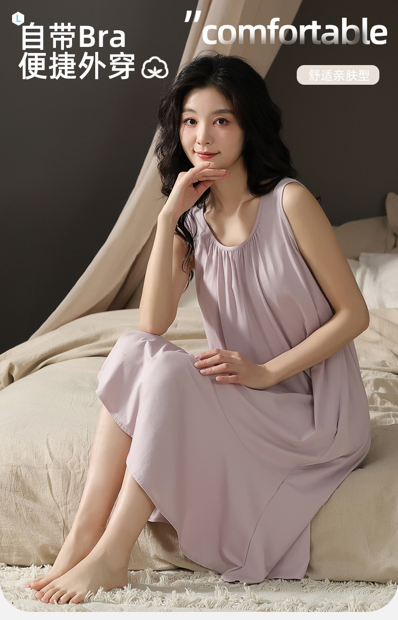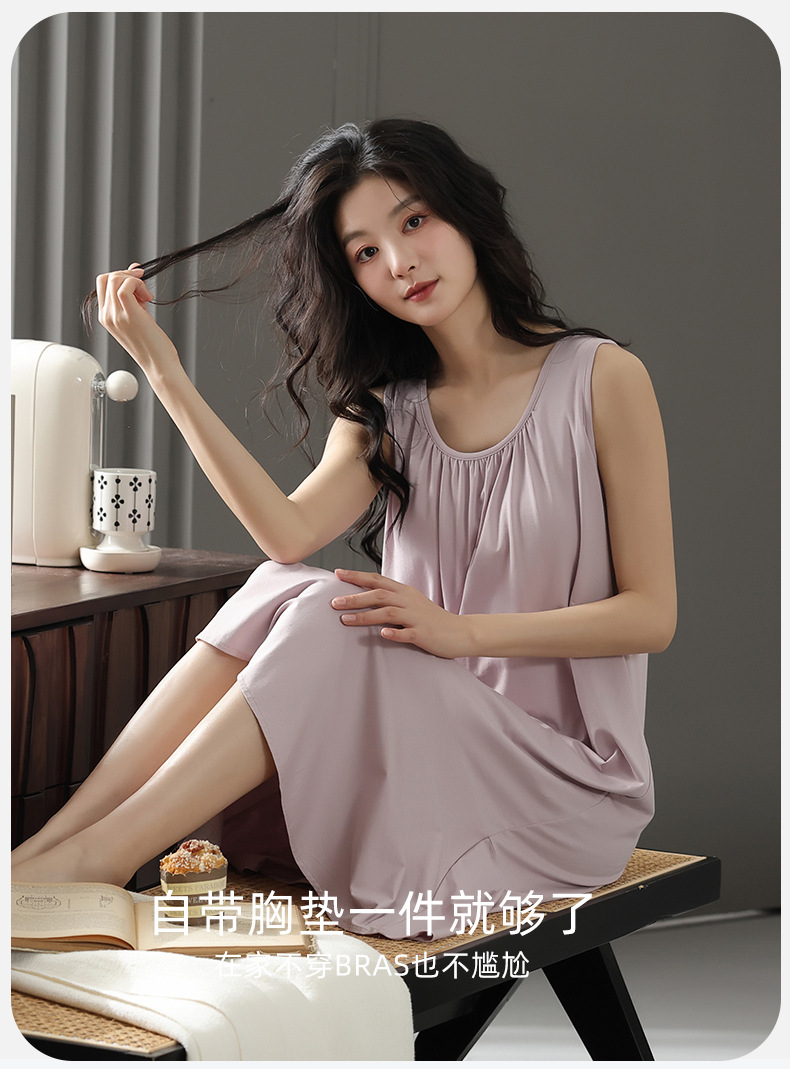 寝ているスカートの女性のタイプの夏のタイプの氷の糸の涼しさの感じのモデルの綿のノースリーブのガーターの夏の胸のパッドの純色のパジャマの家の服