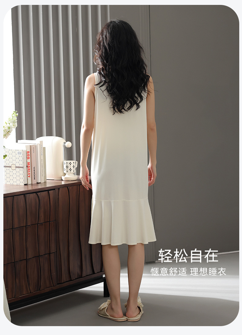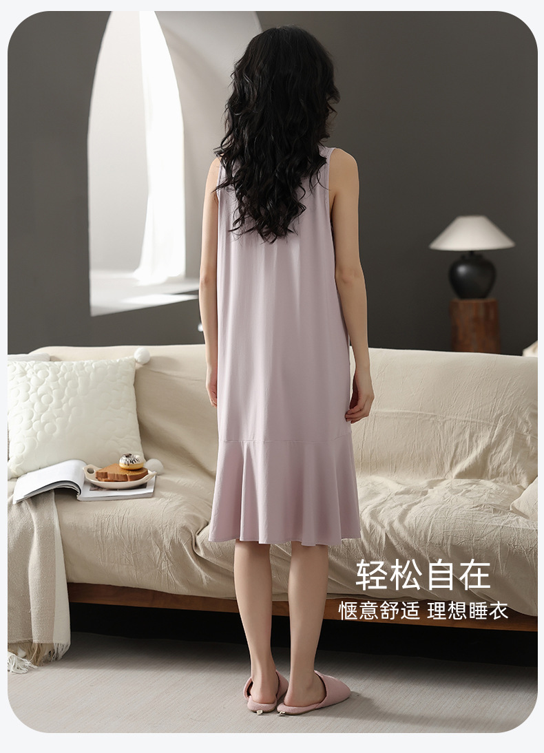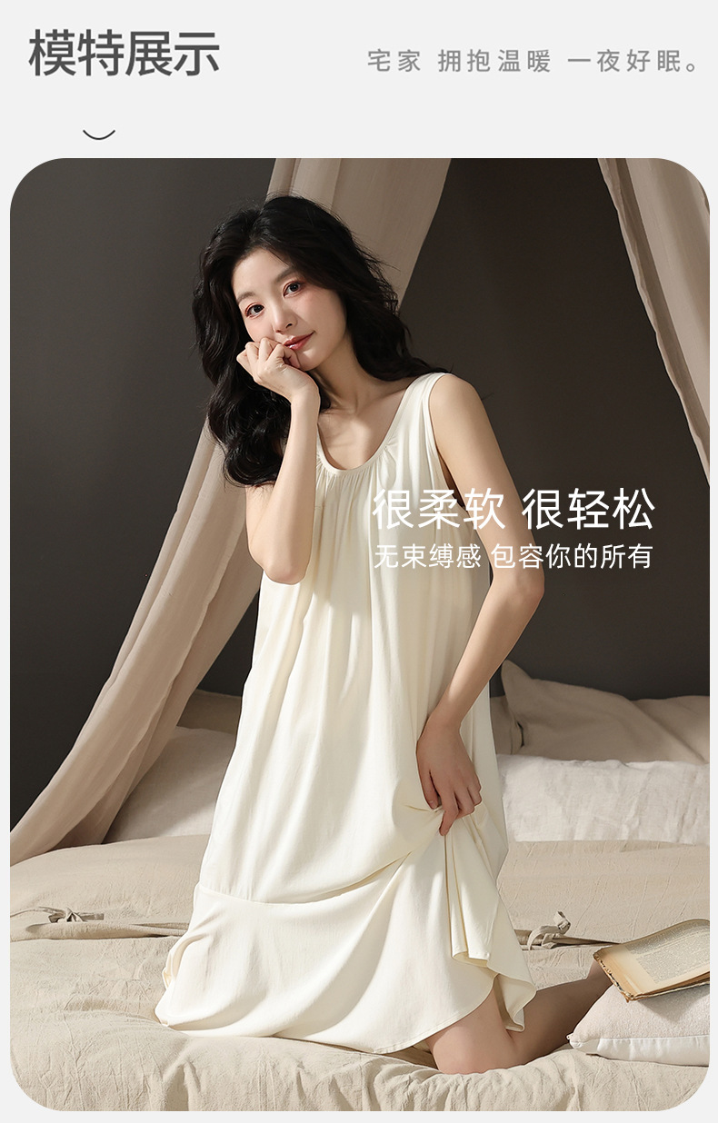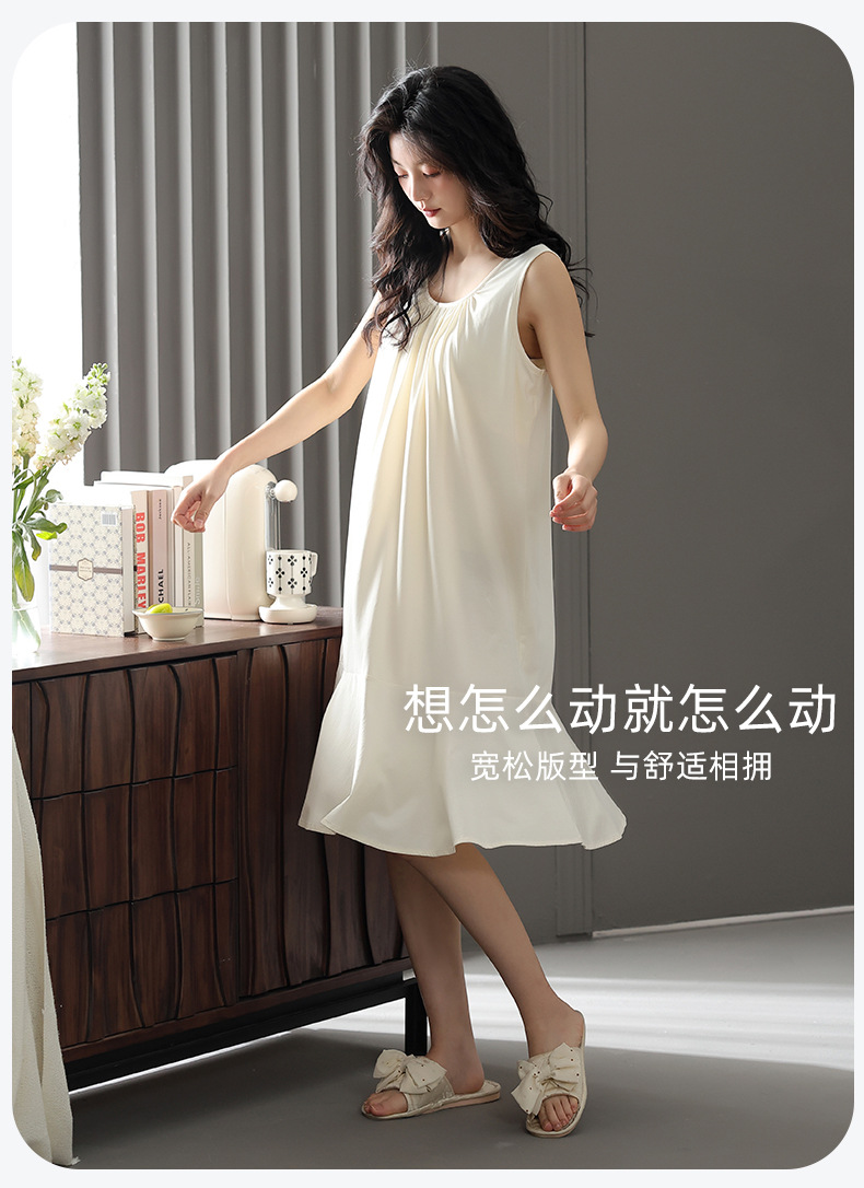 寝ているスカートの女性のタイプの夏のタイプの氷の糸の涼しさの感じのモデルの綿のノースリーブのガーターの夏の胸のパッドの純色のパジャマの家の服