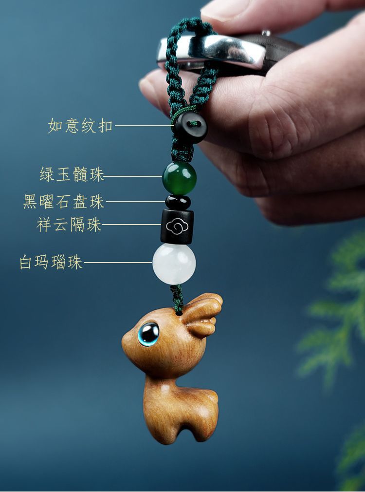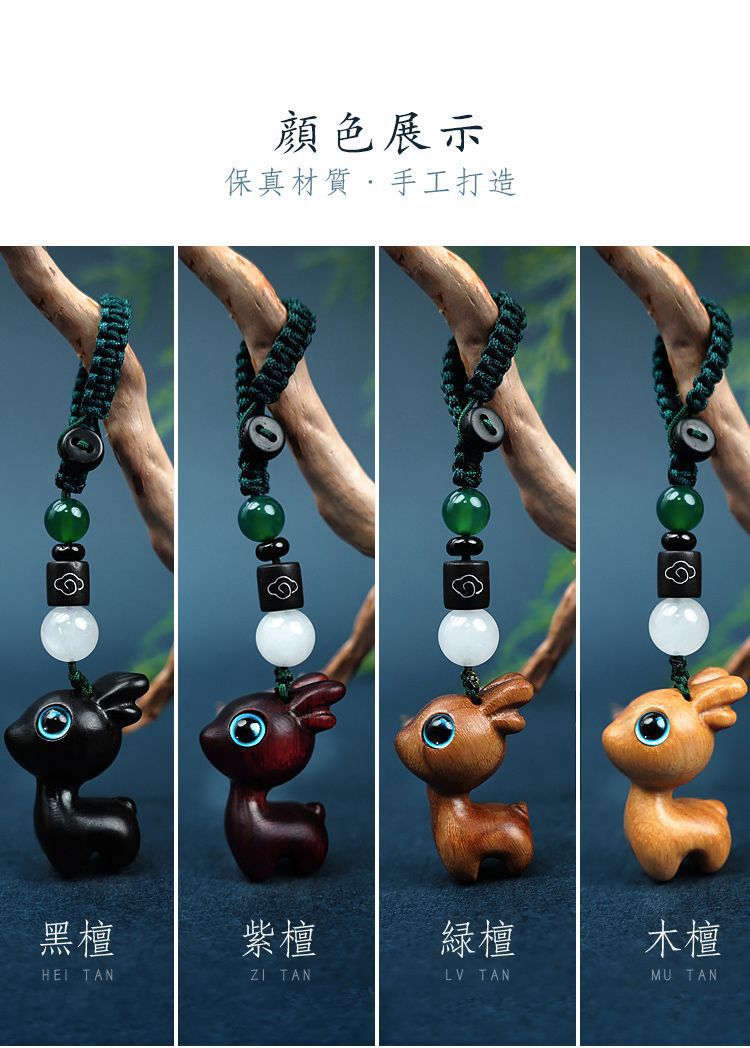 道中檀木小鹿自動車キーホルダー携帯電話ペンダント男女カップル古風飾りチェーン