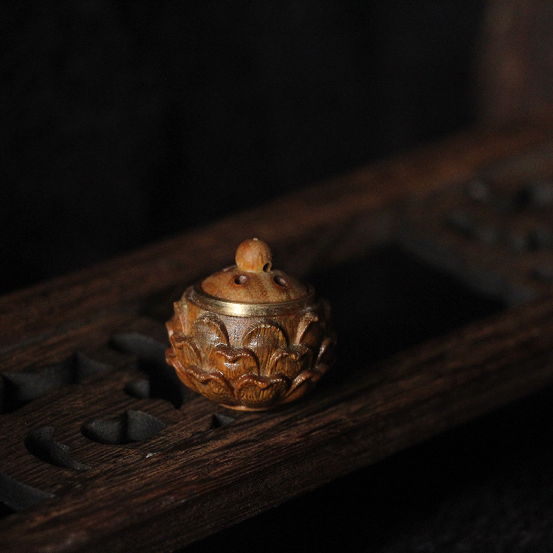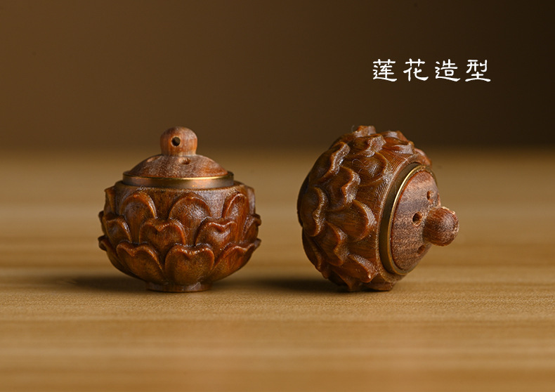 緑檀木古風蓮の花の透かし彫りの香嚢は香薫のペンダントを身につけてdiyのネックレスのペンダントの部品の装飾に合うことができます。