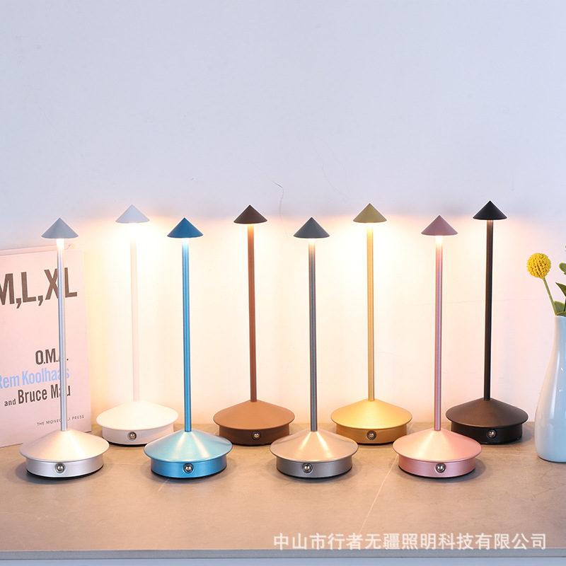 跨境批发小夜灯创意尖顶台灯户外露营充电灯餐厅咖啡厅酒吧氛围灯