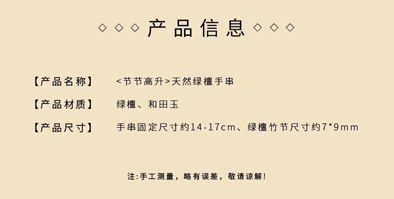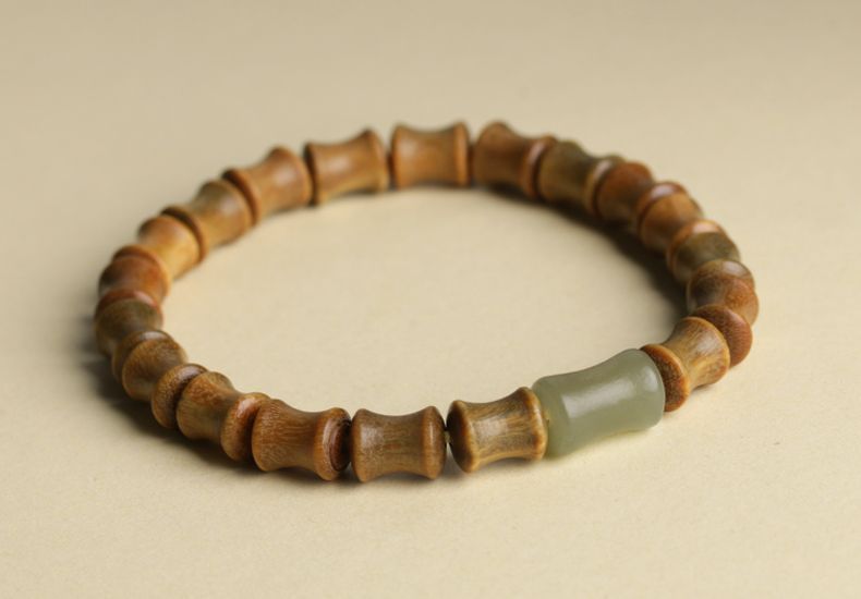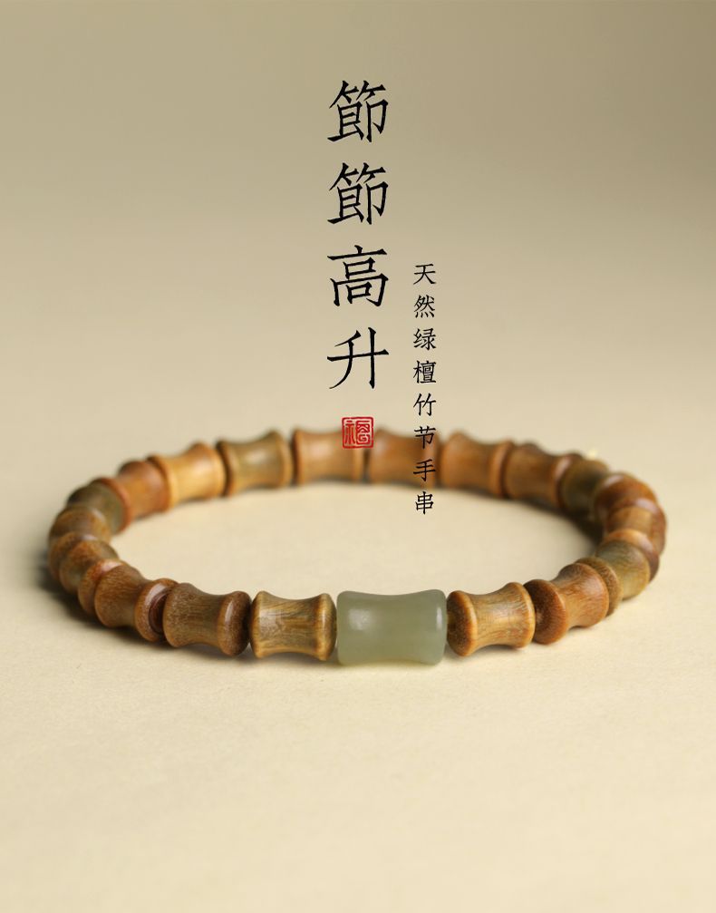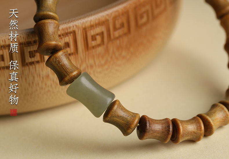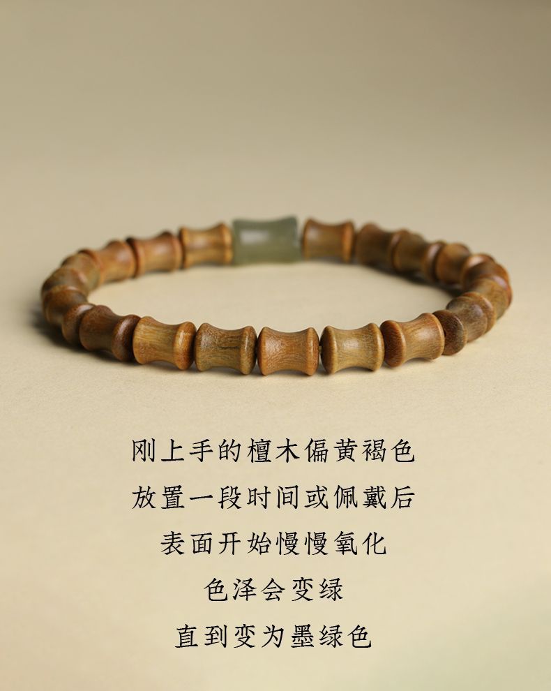 カラー 7*9mm緑檀木竹節手串和田玉竹節,8*10mm緑檀木竹節手串和田玉竹