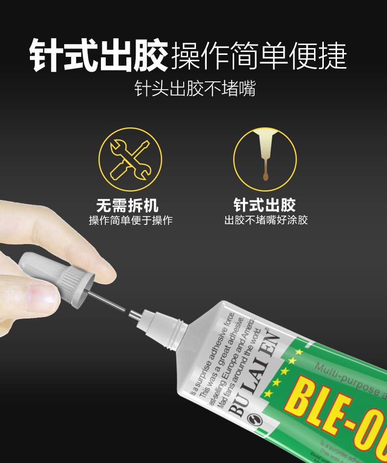 B7000は針と接着剤が付属しており、携帯電話の画面接着剤、ジュエリー、DIYダイヤモンドステッカー、透明な万能強力接着剤などに最適です。