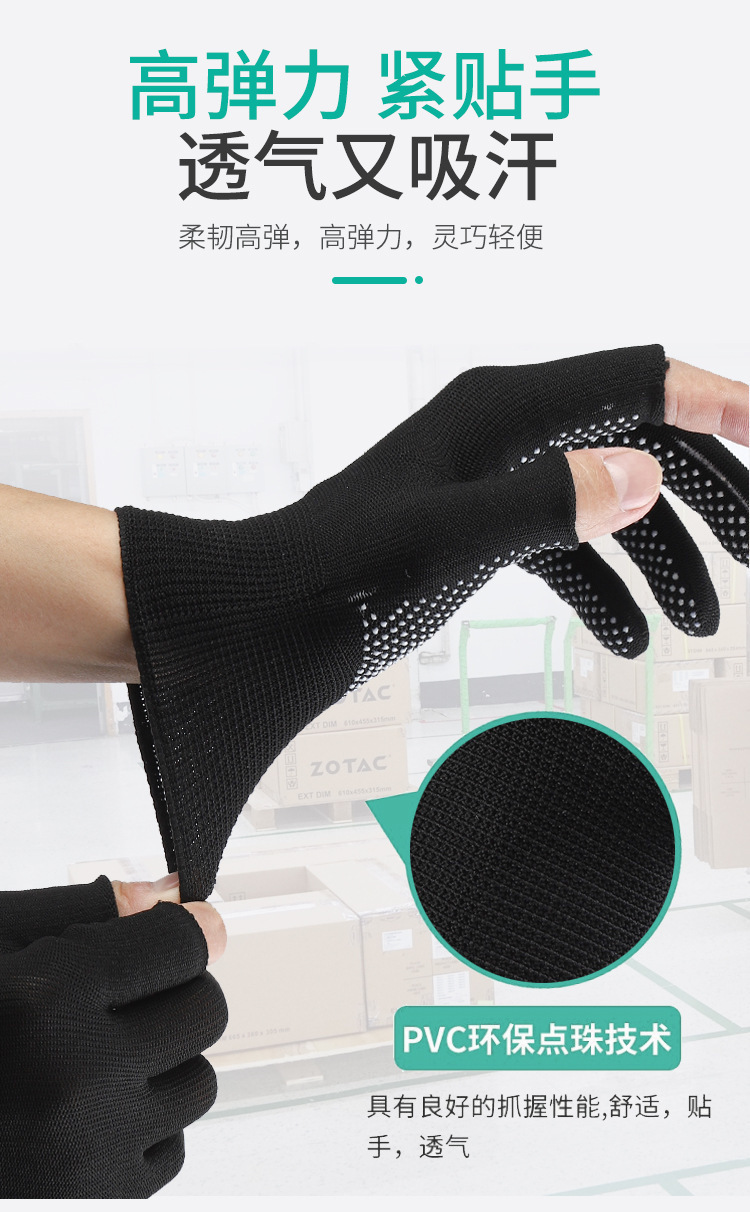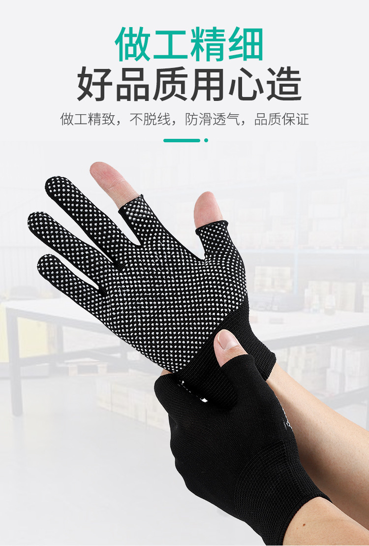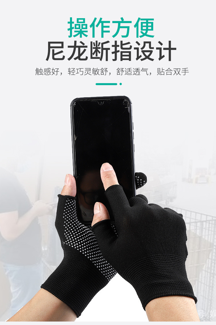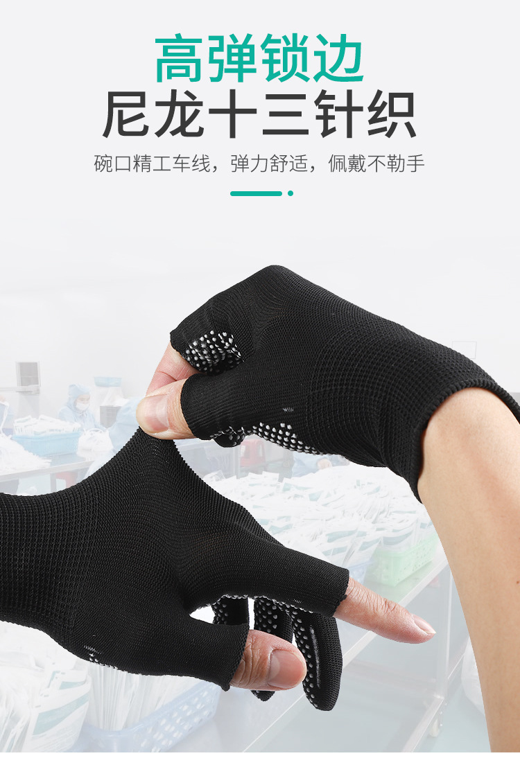 露二指点ゴム手袋13針滑り止め釣り選別宅配業者がナイロンタッチパネル労働保護手袋に乗る