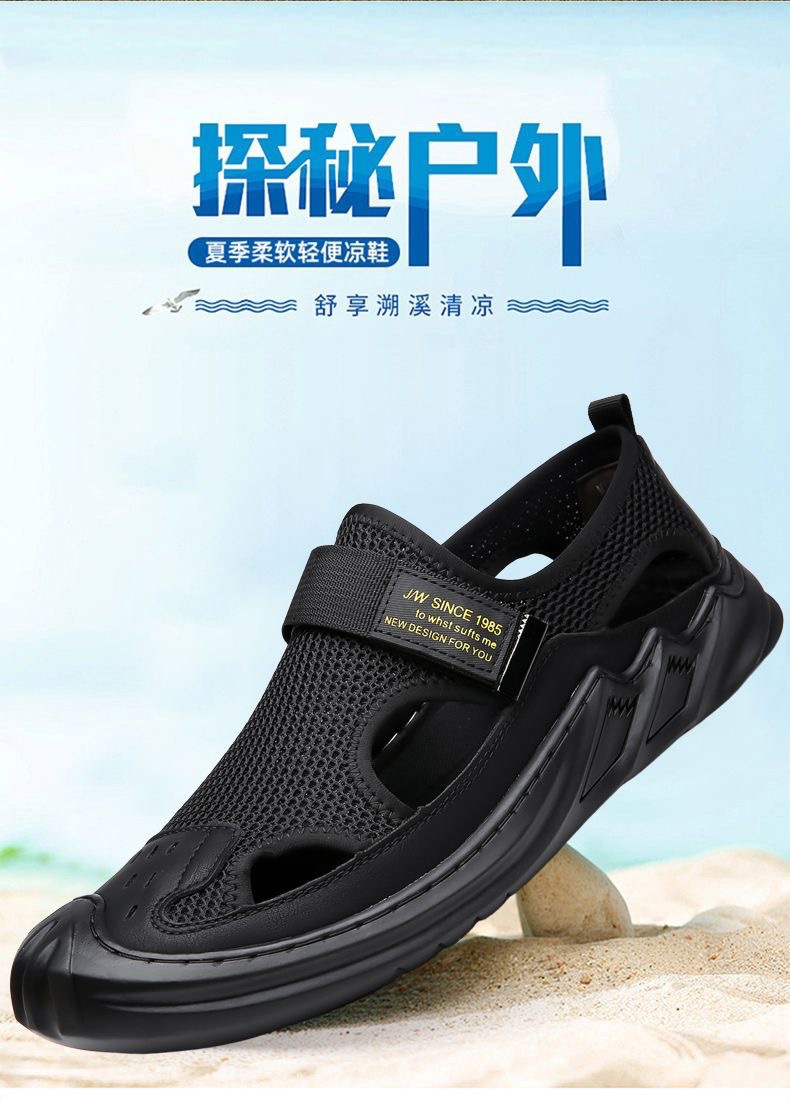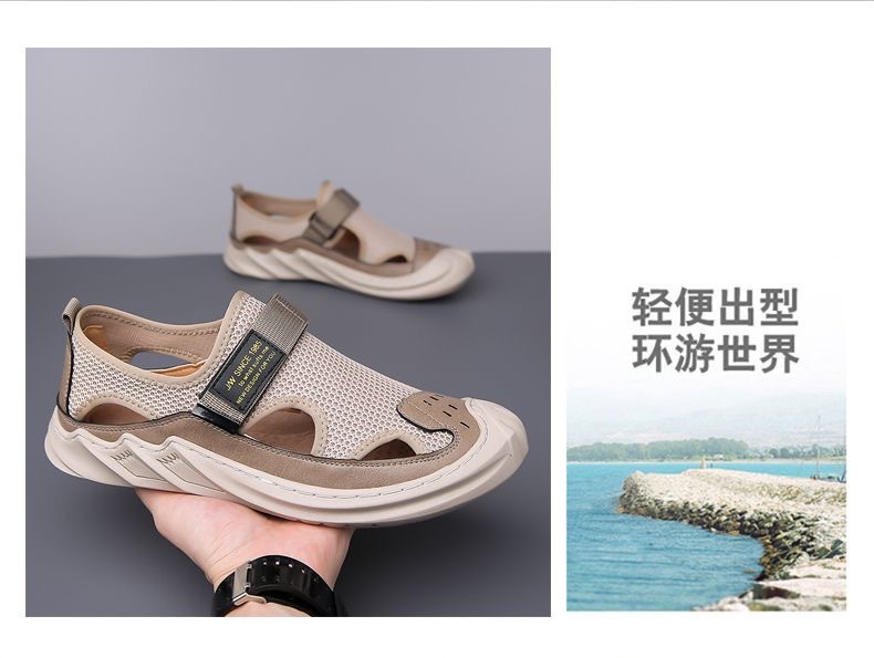 クロスボーダー紳士靴メッシュ通気性軽量布靴夏の新しい包頭サンダルメンズ片足中空メンズカジュアルシューズ