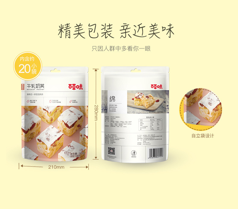 百草味牛圧延乳芙160gには、独立包装約20包のクランベリー味の飢えたスナックが含まれています