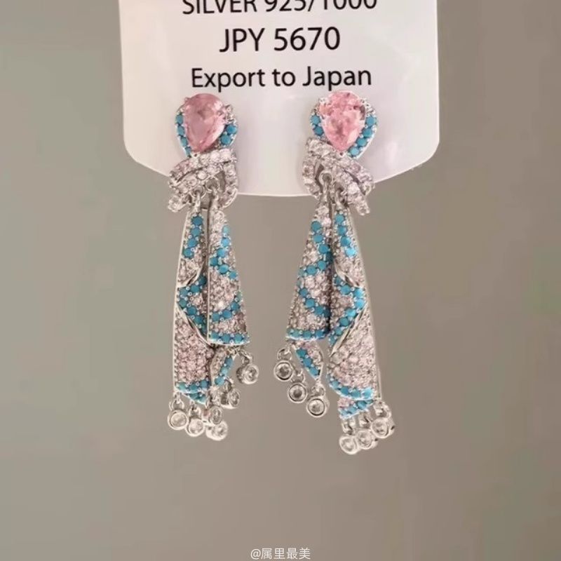 S925銀満ドリルカラーシルクイヤリング軽豪華小衆高級感ピアス民族風流蘇長型イヤリング女性