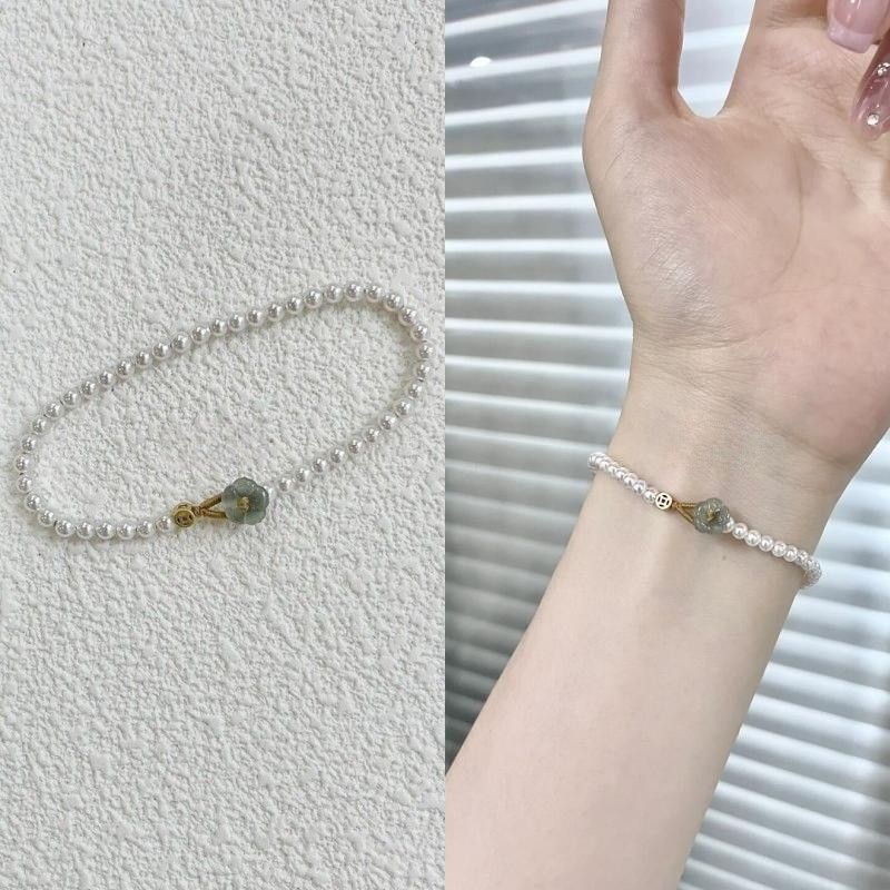 お金持ちの花 ~ miniの小さい真珠の硬貨のブレスレットの女性の復古の小さい大衆の設計の翠色の小さい花は縄のブレスレットの手の縄を編みます