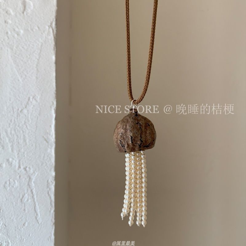 「深底」水母珍珠长款抽拉绳毛衣链轻奢设计感项链配饰