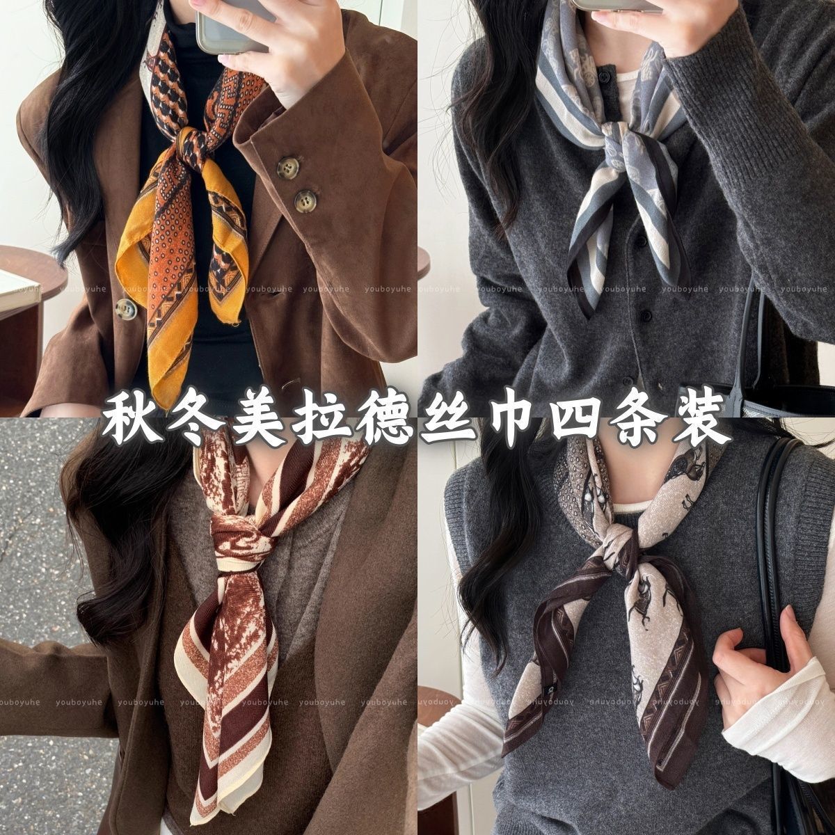 小马图腾~美拉德咖色四格丝巾女2025秋冬新款高级感系脖围巾配饰