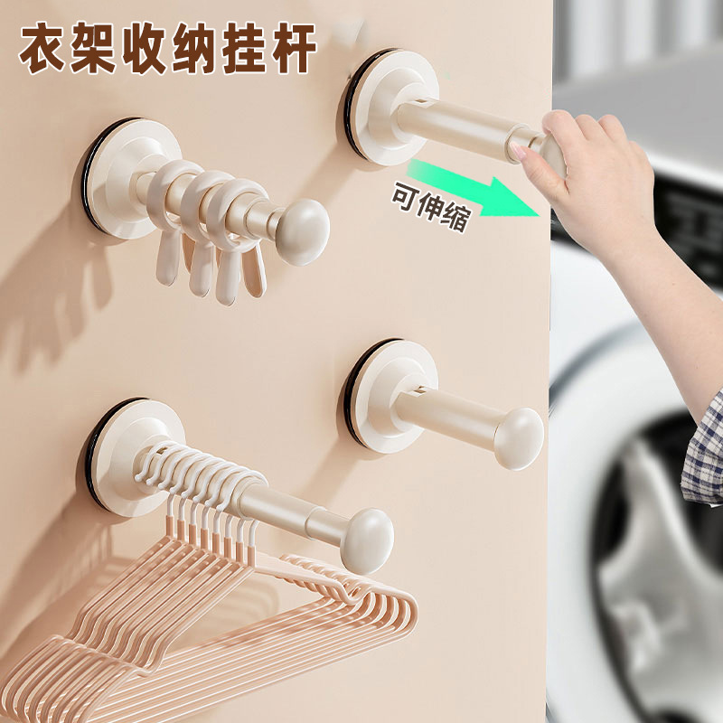 吸盘衣架收纳神器家用阳台存放多功能伸缩杆免打孔墙上壁挂晾衣架