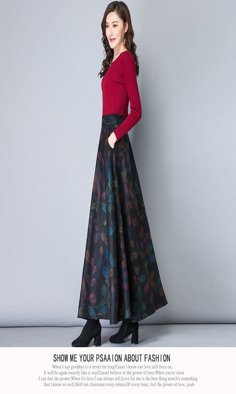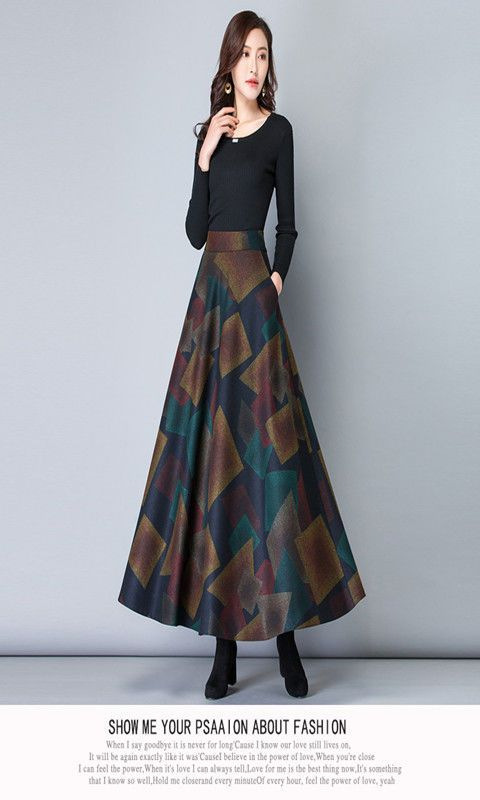 2025秋冬 無地ウールスカート 大きめAラインスカート ハイウエストミドル丈 大きいサイズロングスカート 大きめスカート