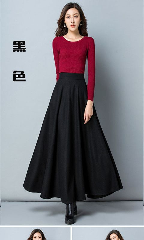 毛呢半身裙女中长款秋冬高腰纯色a字裙子长裙冬天配毛衣新款裙子
