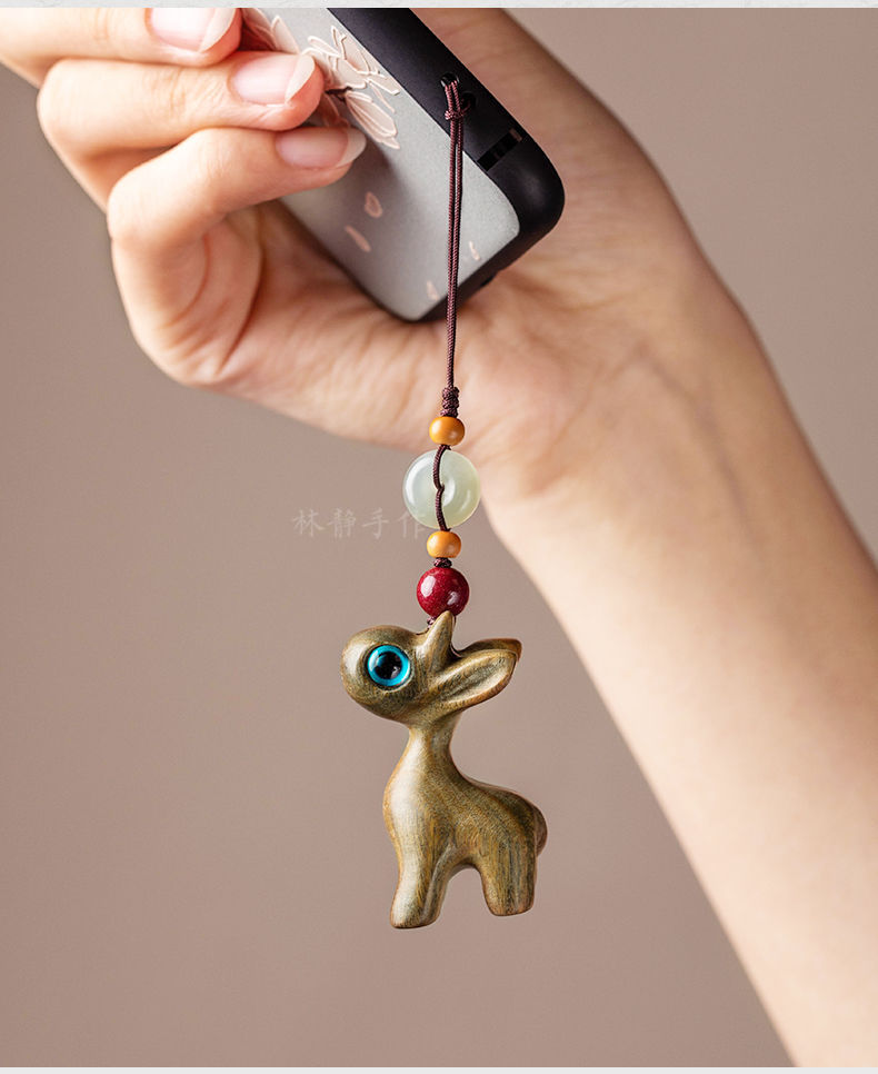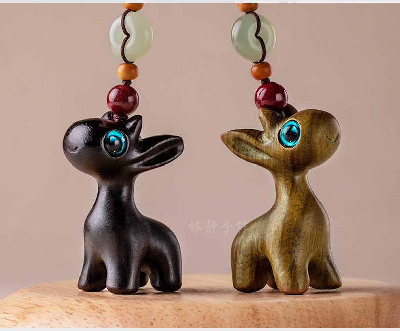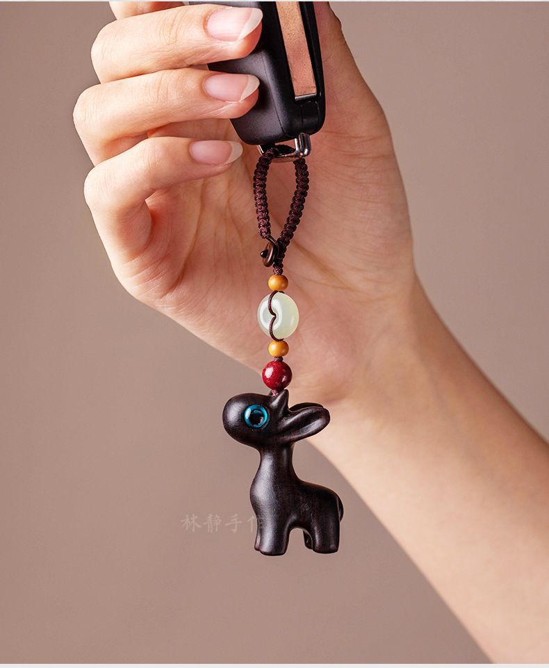 道中檀木小鹿自動車のキーホルダーはかわいい小清新携帯電話のペンダントです。