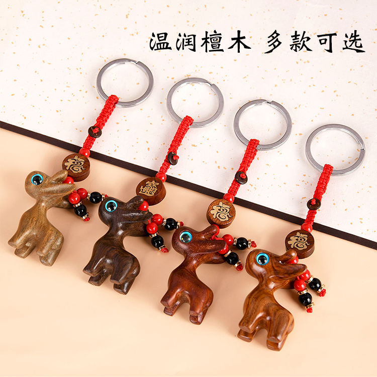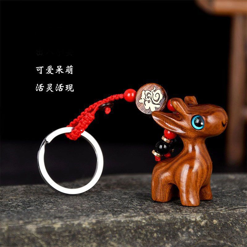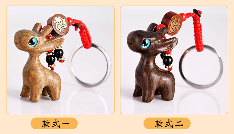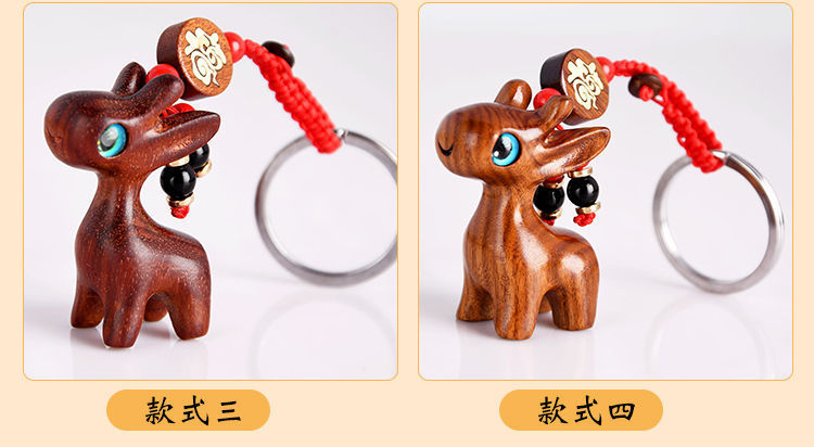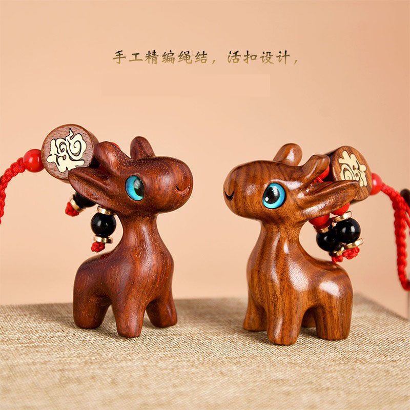 檀木小鹿自動車一鹿キーホルダー男女モデルの可愛いシンプルな創意バッグにプレゼントを掛けます。