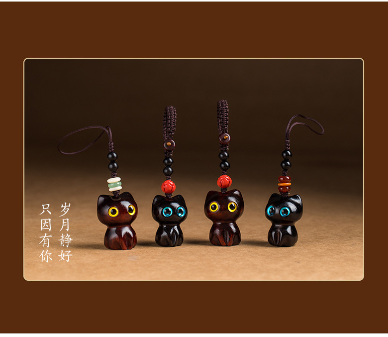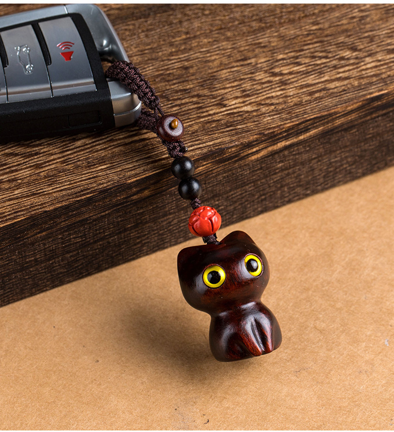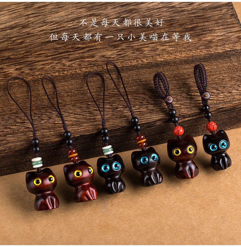 個性的な携帯電話のu盤の縄は猫の檀木のキーホルダーのペンダントの創意的な手編みの縄の自動車のチェーンを包みます。