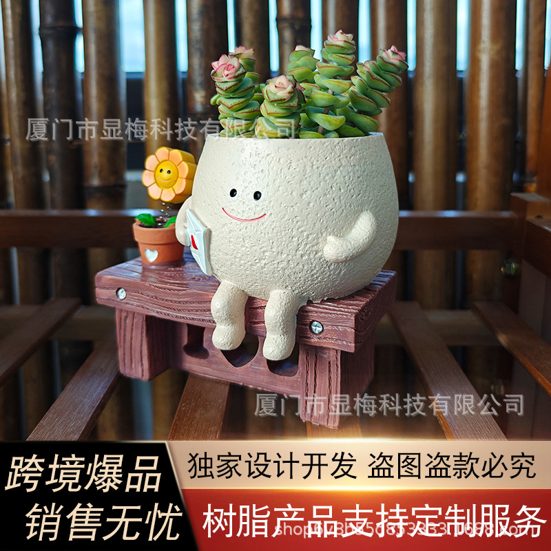 クロスボーダー人気の多肉植物植木鉢かわいい笑顔クリエイティブ小さなスイング植木鉢インターネット有名人パーソナライズされた樹脂植木鉢装飾品