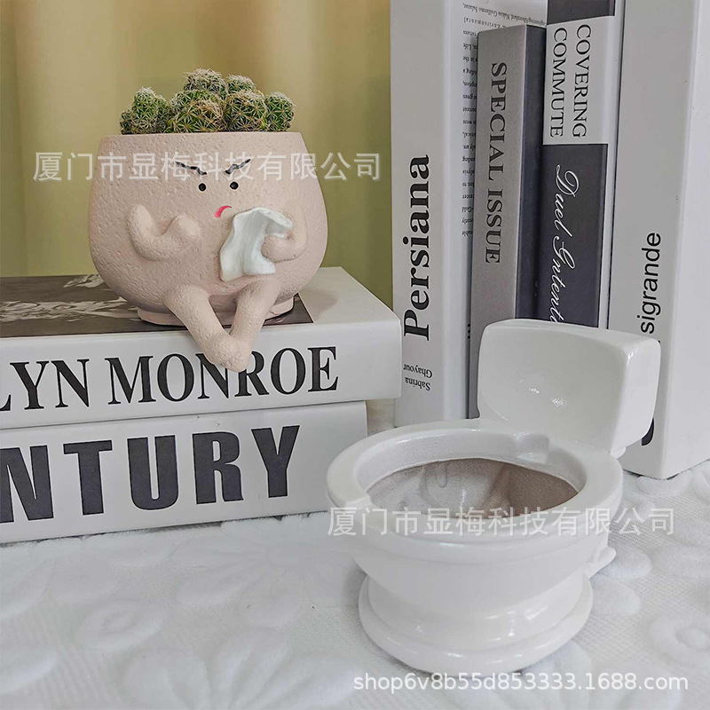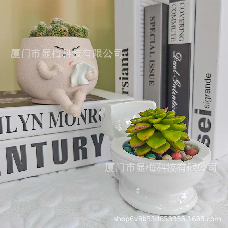 跨境马桶多肉花盆装饰摆件创意可爱绿植公室书房花盆装饰品摆设