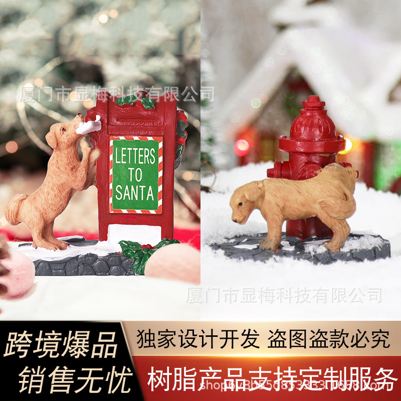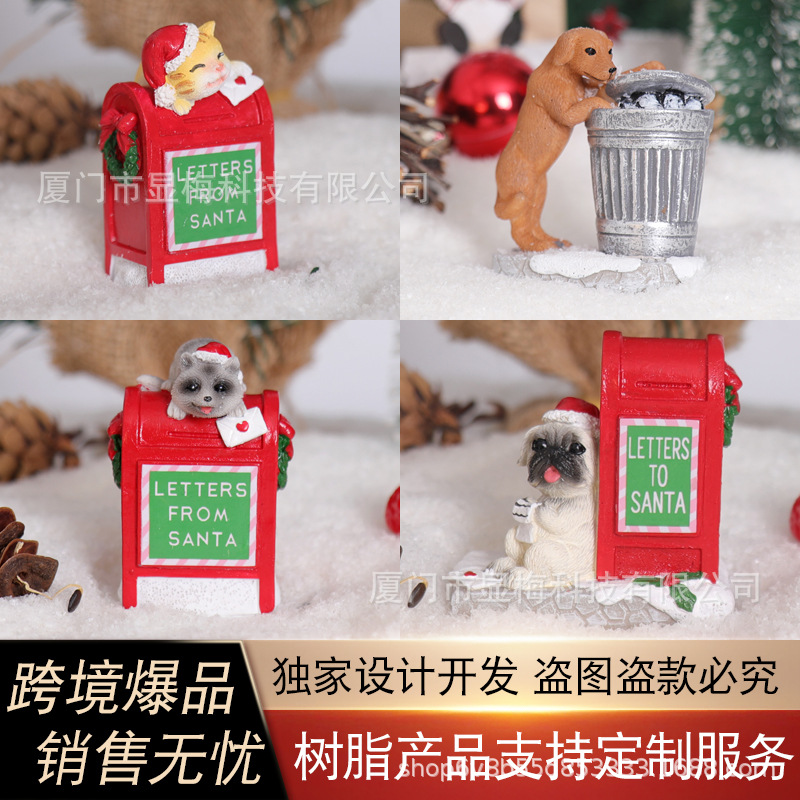 クロスボーダーのクリスマスの贈り物の家の装飾の樹脂の工芸品の置物の漫画の赤い犬の郵便受けの動物の装飾品