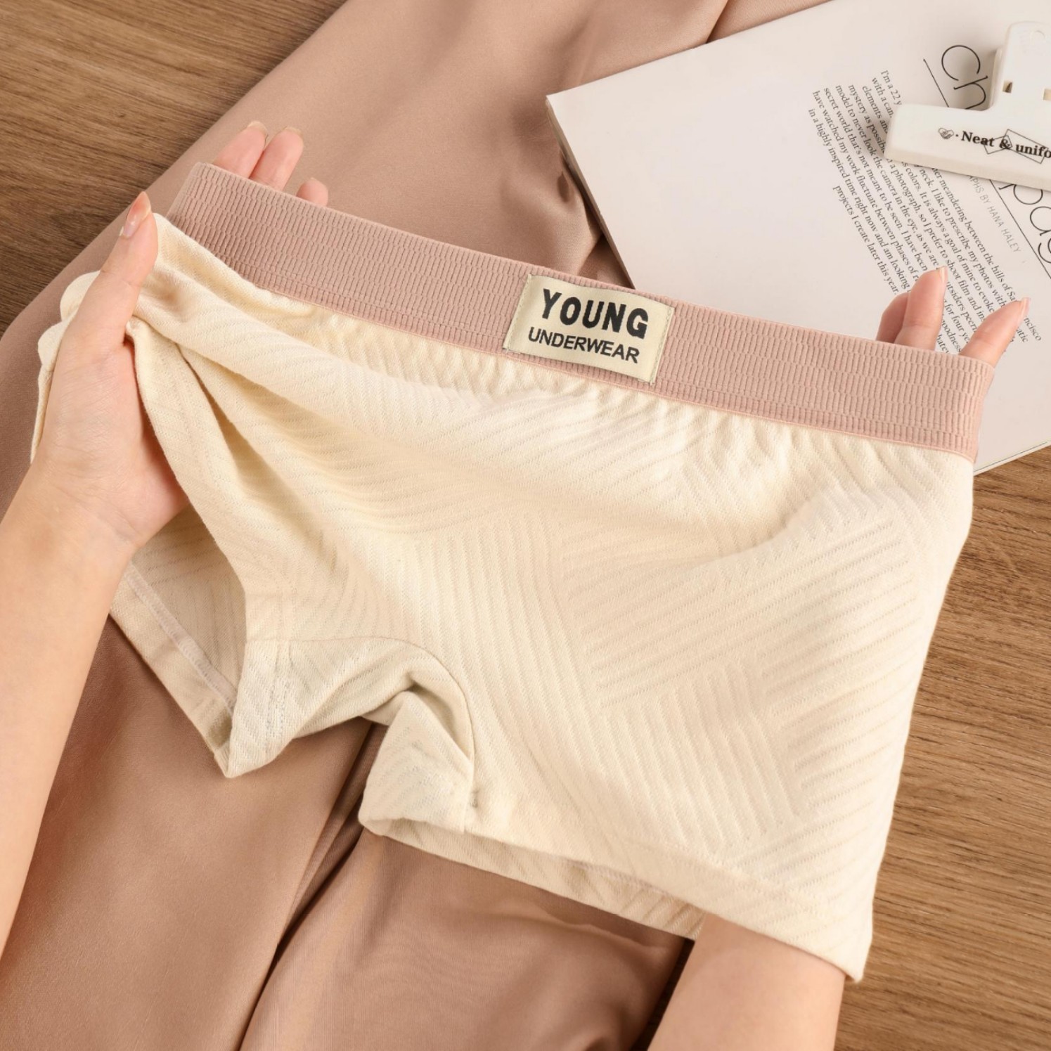 純綿の女性の下着女性のボクサーブリーフ抗菌股夏綿ストライプテクスチャジャカード女の子ボクサーパンツ